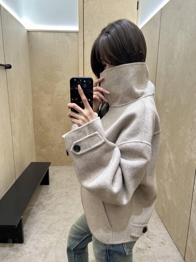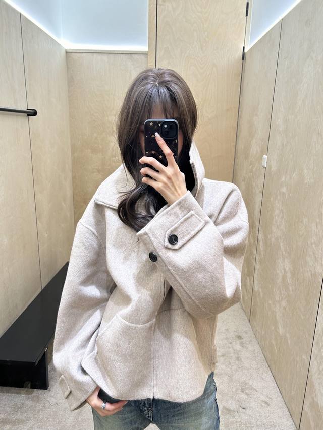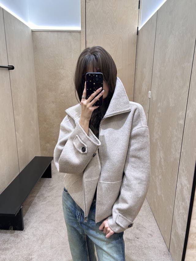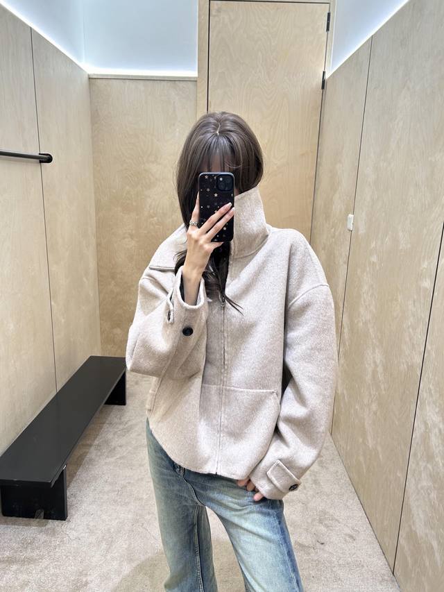 Acne Studi*S 25Fw Autumn/Winter New Cashmere & Wool Blend Stand Collar Zip-Up Jacket | Exclusive Yb Development! High-Quality Production! Made with a cashmere and wool blend fabric, it has a delicate fleece feel, soft and warm against the skin. Both light oatmeal and classic black colors are perfect for the autumn/winter season. The stand collar can cover the neck, combining warmth and a casual vibe; the fold-over collar adds a sharp, sophisticated touch. The loose, cropped silhouette is highly forgiving of different body types, doesn't make you look shorter, and can even optimize proportions. Paired with wide-leg jeans, it's the perfect casual everyday look. Available now in S, M, L,