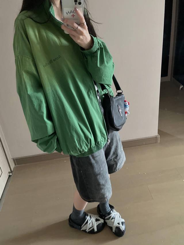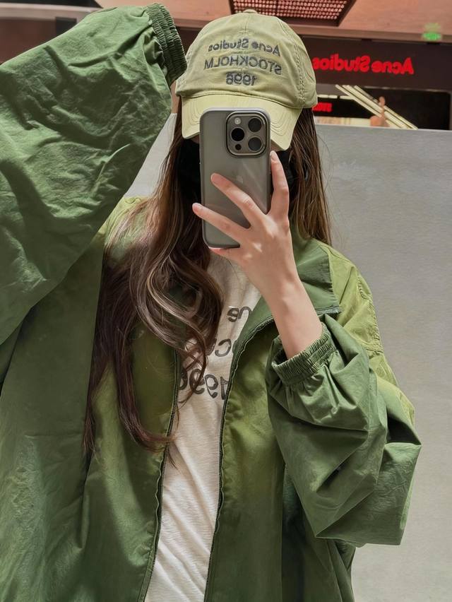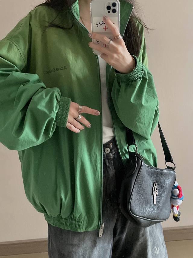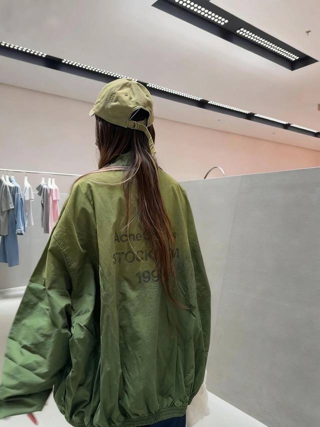 Acne Studi*S 25Fw New Early Autumn 1996 Logo Loose Casual Zipper Jacket | Exclusively developed by Yb! High-edition product! Made of textured fabrics, it presents a rich and retro olive green tone. The loose drop shoulder design brings a casual and comfortable wearing experience. Whether it is worn as a simple T-shirt or layered with a sweater, it can be easily controlled. The stand-up collar is neat and stylish, and the smooth two-way zipper not only enhances practicality, but also adds a sense of neatness to the overall look. There is a low-key brand logo embroidery on one side of the body, and the details highlight the brand style. It is a high-quality item for creating street casual or urban minimalist style. Available now SML