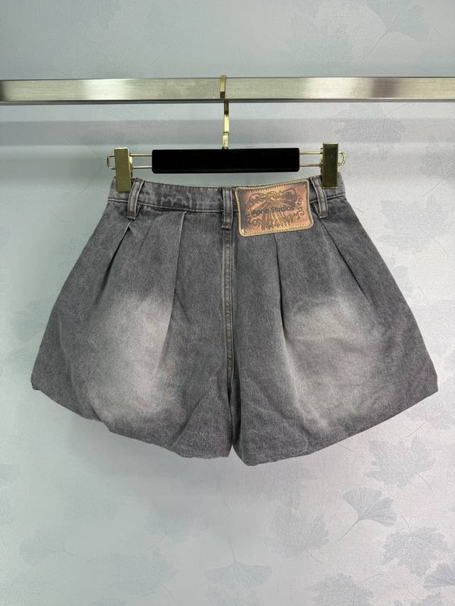 Acne Studi*Women's casual faded print elastic waist denim shorts pants are shipped, slimming essentials, retro old smoke gray, flower bud design, especially for big PP beauties! 1 color 3 size Sml T226B