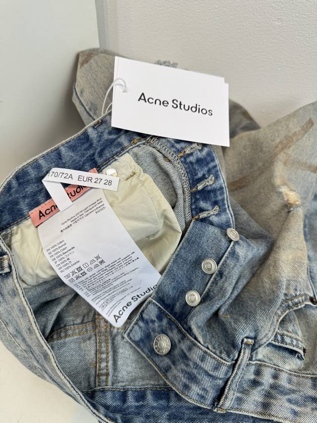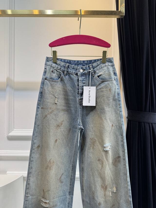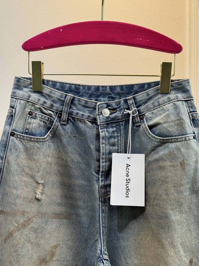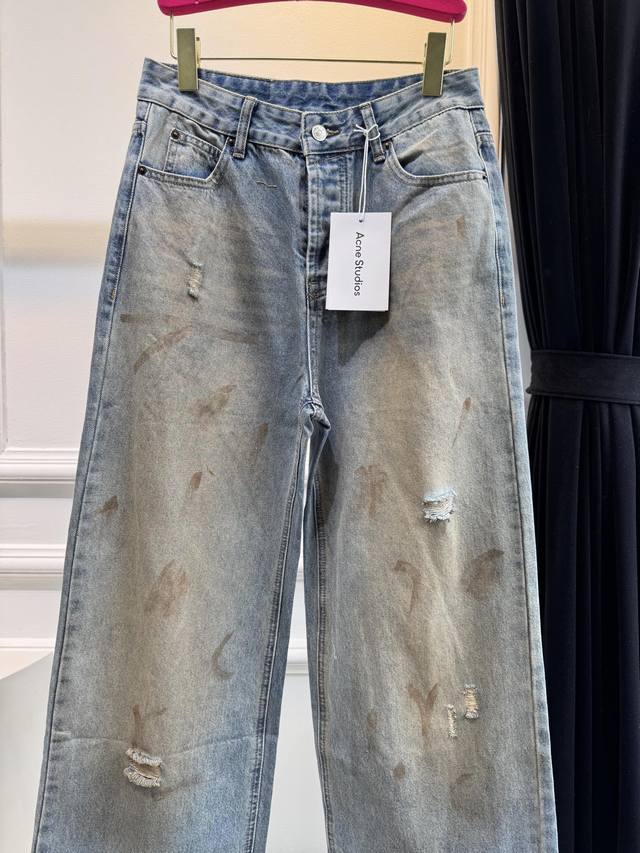 acne's new arrival~ Ink-splashed distressed leather label jeans