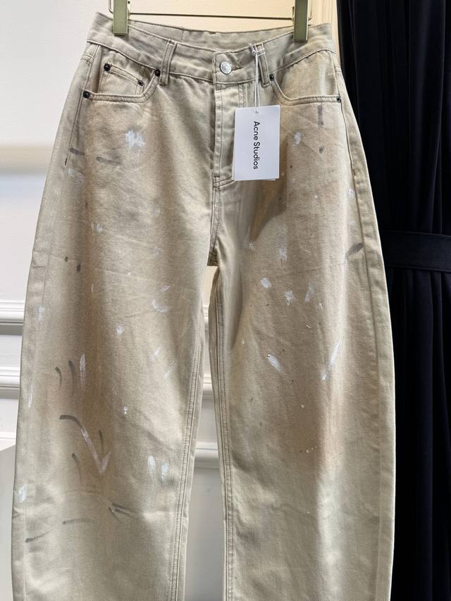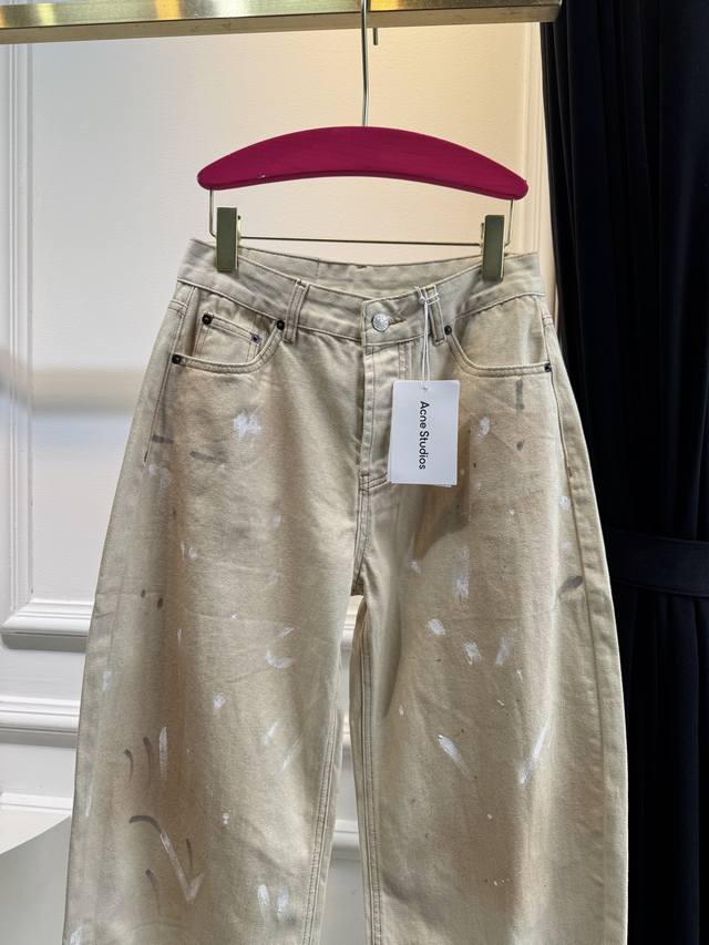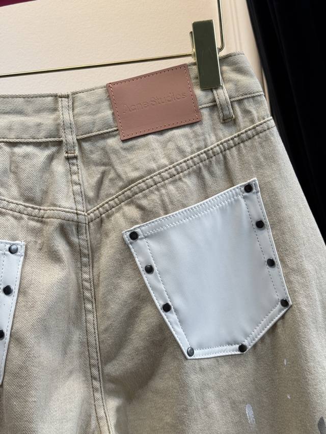 acne's new arrival~ Ink-splashed distressed leather label scimitar jeans