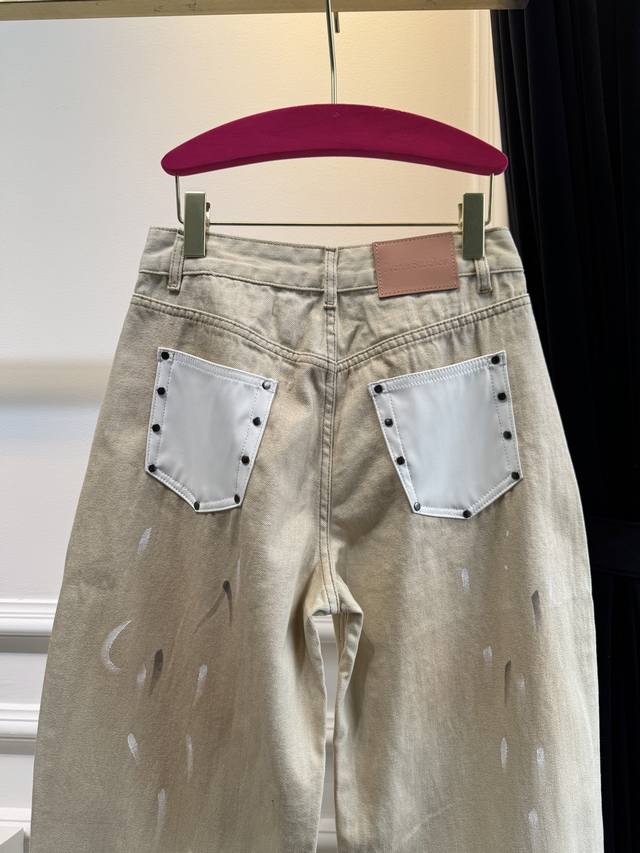 A must-have for retro players, the mud-dyeing process with its own storytelling, each texture is unique! Distressed leather pockets, distressed cowhide patches, hand-stitched seams, rough yet exquisite details~ The god-level wide-leg version instantly hides wide hips and thick legs