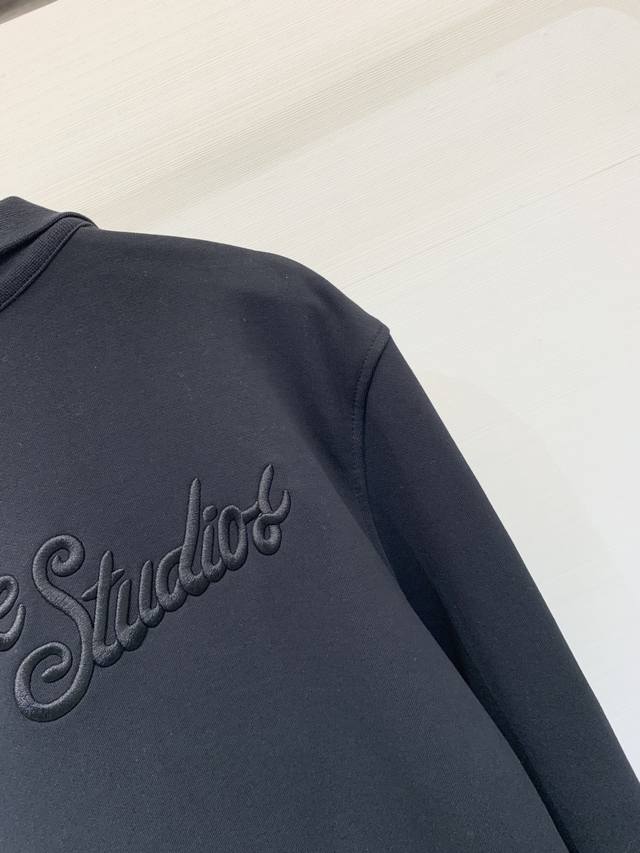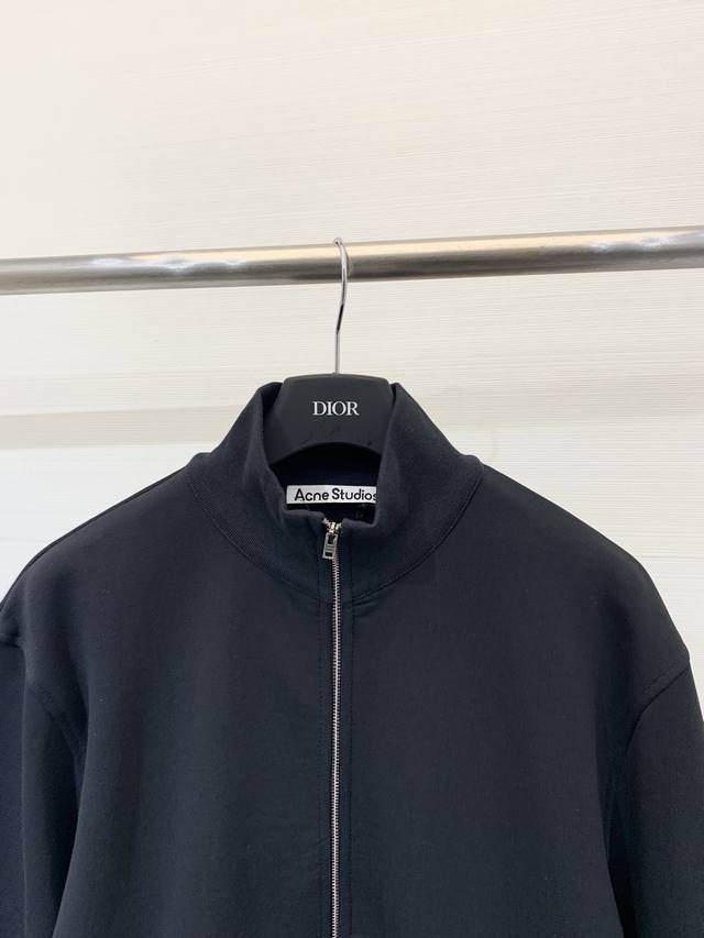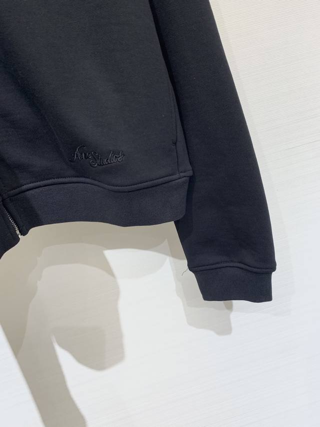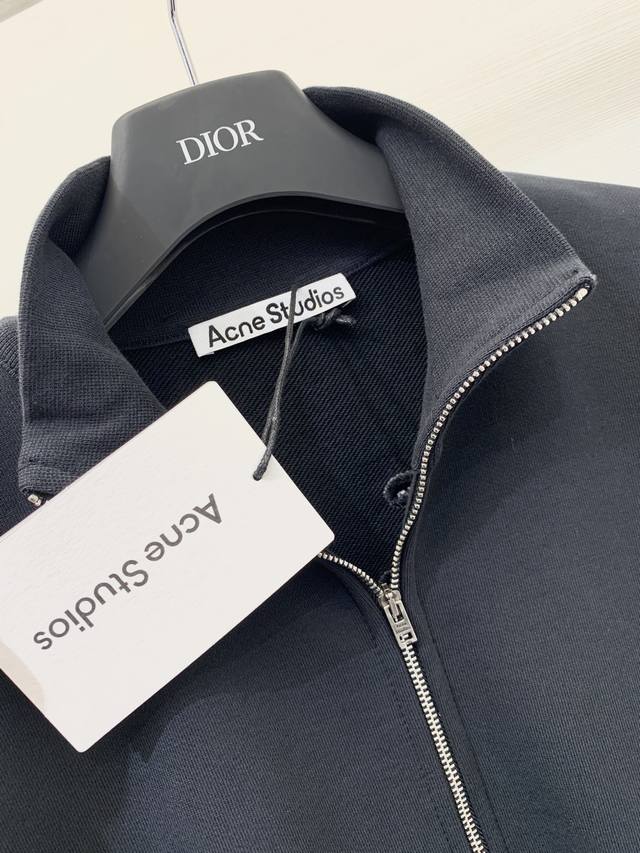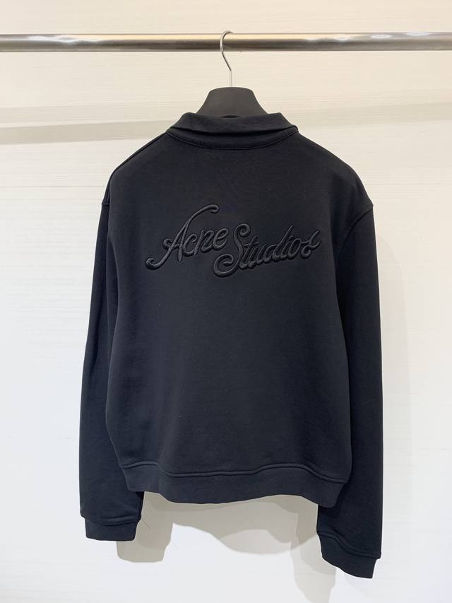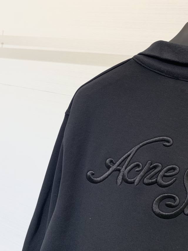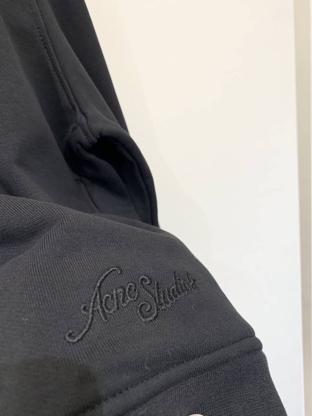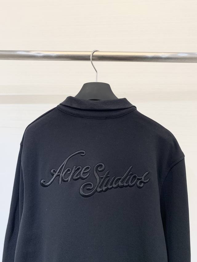 Acnestudios Autumn/Winter 25 collection. Long-sleeved cardigan with washed, distressed, and hand-worn embroidery of English letters on the back. Basic yet detailed, this cardigan features a loose silhouette. Available in sizes XS, S, M, L, and