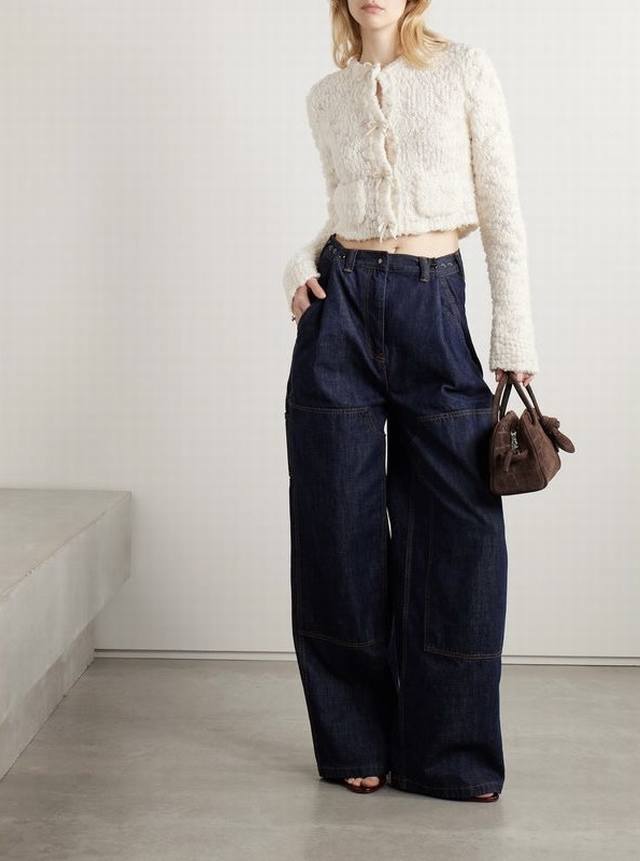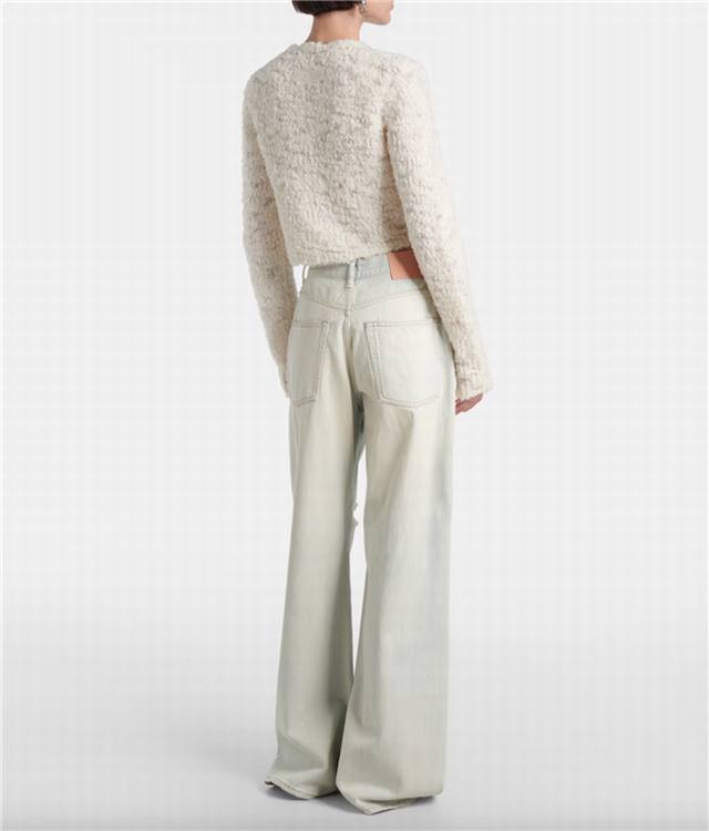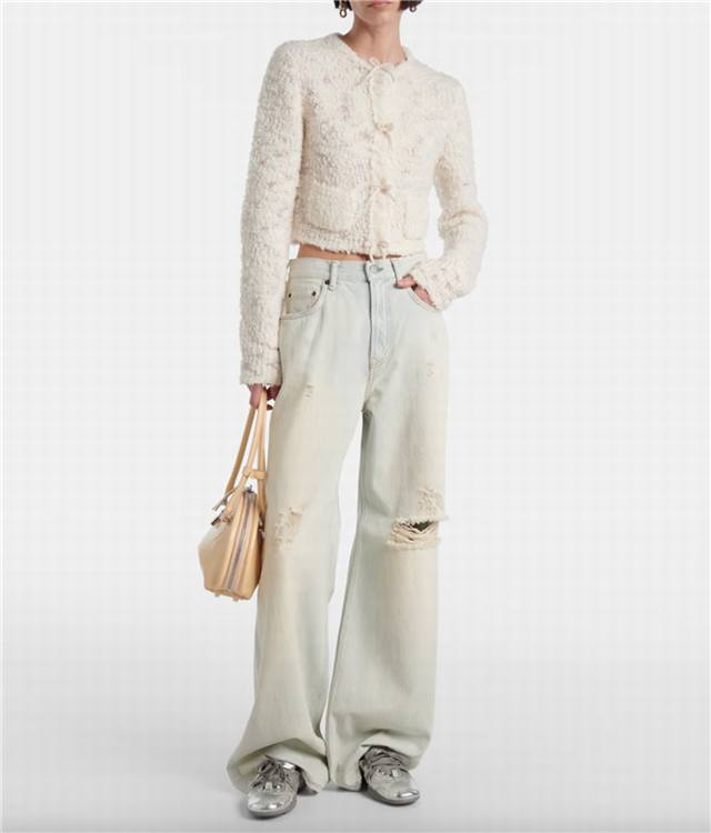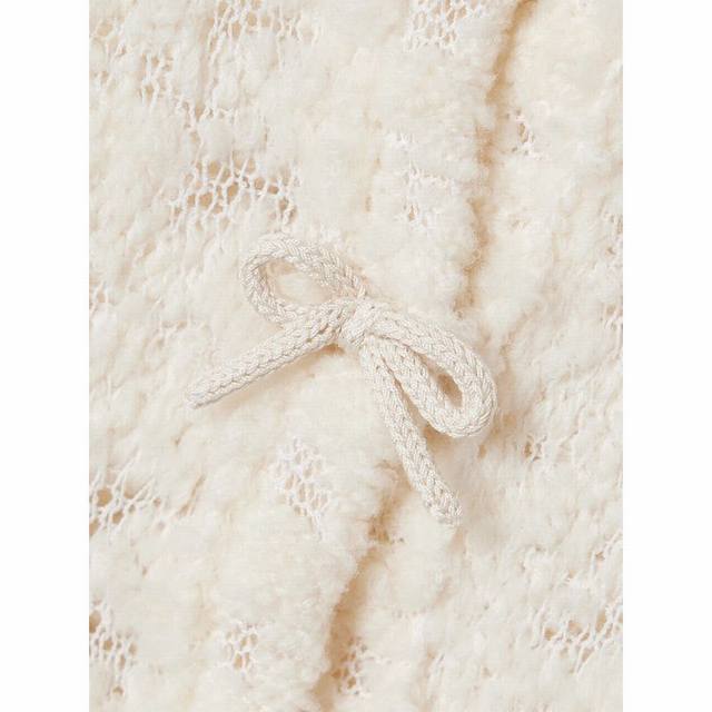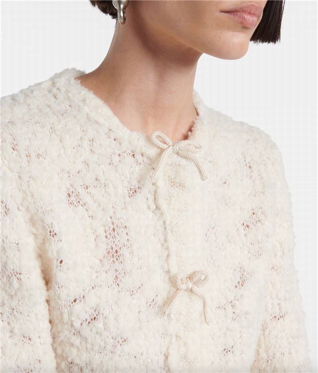 Acnestud*Ios Early Fall new high-end custom wool blend yarn fabric, sweet temperament and age-reducing bow embellished round neck long-sleeved cropped grain fleece knitted cardigan top! Beige, size M: shoulder width 43, chest 94, sleeve length 70, length 49