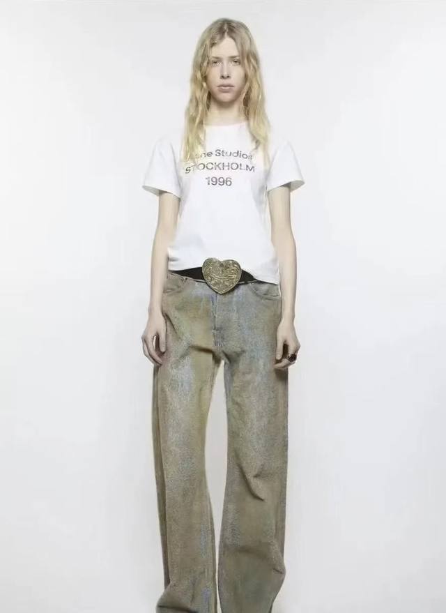 Acnestud*Ios New high-end custom fabric, distressed letter logo print, simple, stylish and versatile short-sleeved T-shirt! White, Black, Size M: Shoulder width 42cm, Bust 90cm, Sleeve length 16cm, Length 57cm DDD