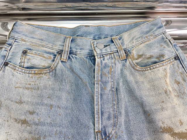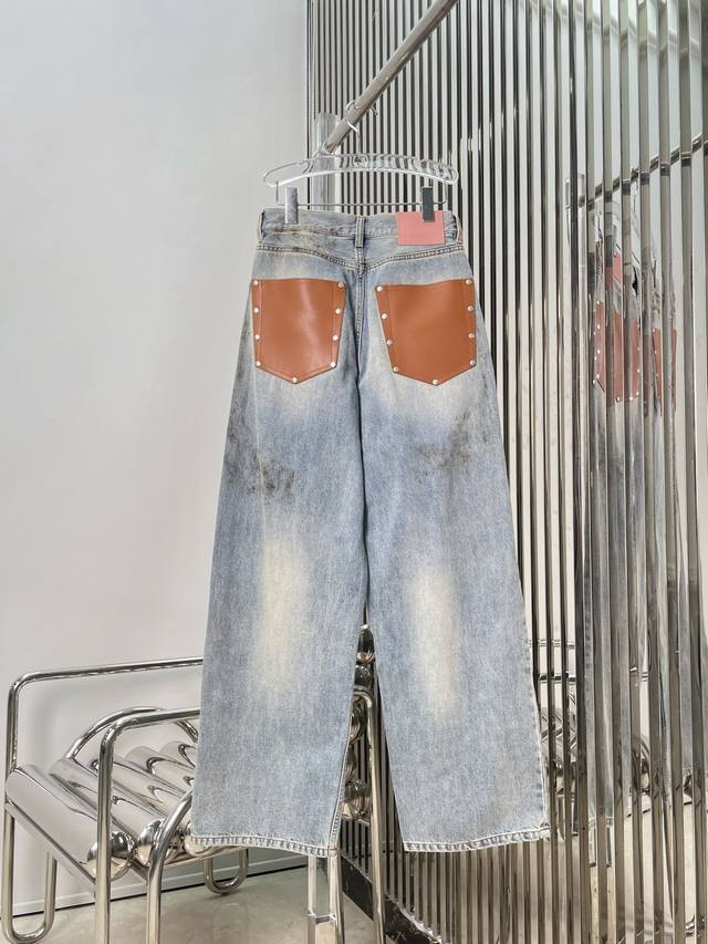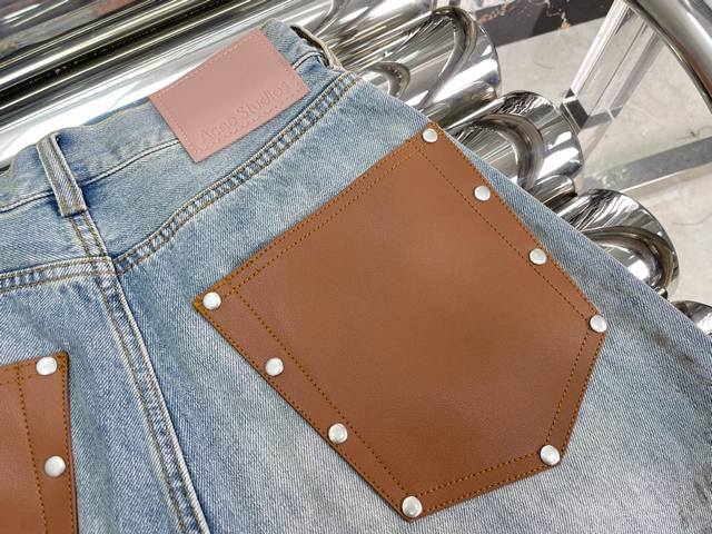 / Actual photos! Latest Acne 25New genuine leather pocket washed distressed jeans