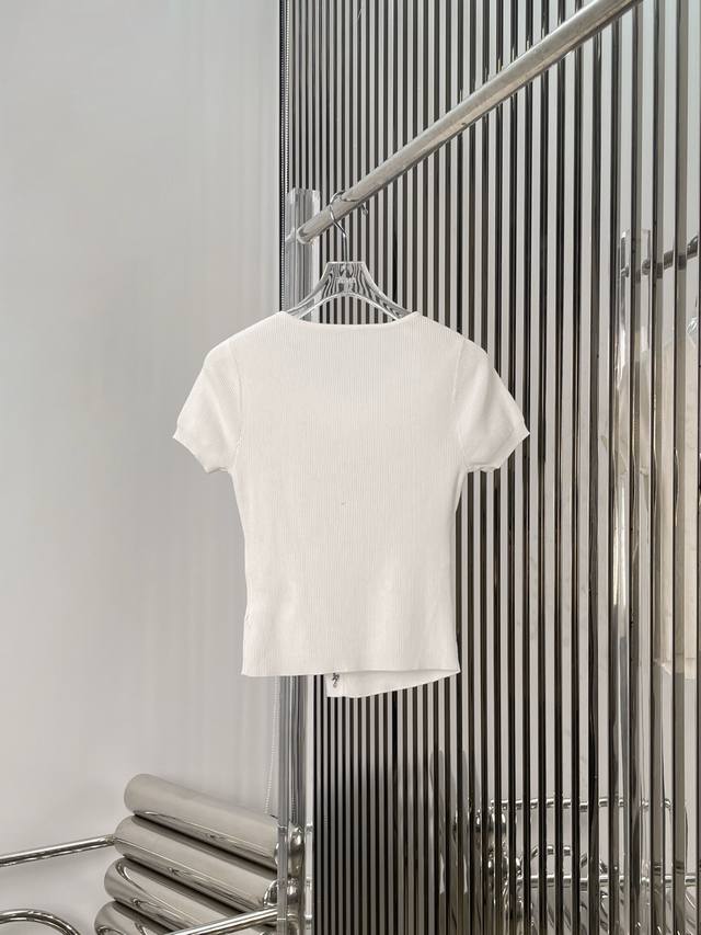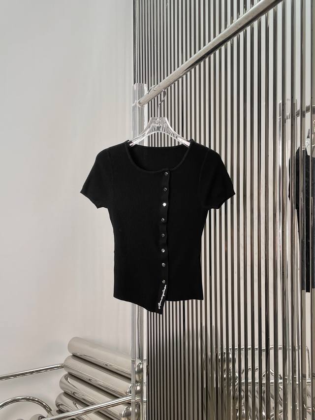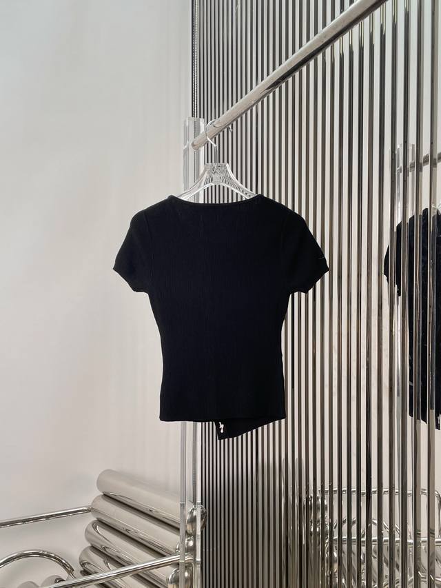 Actual photos! Latest Ann 25New irregular letter embroidered knit short-sleeved top. Colors: Black, White. Size: S, M, L.