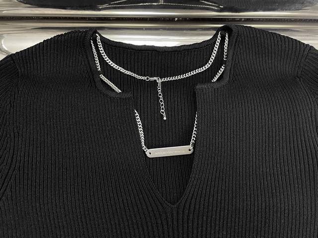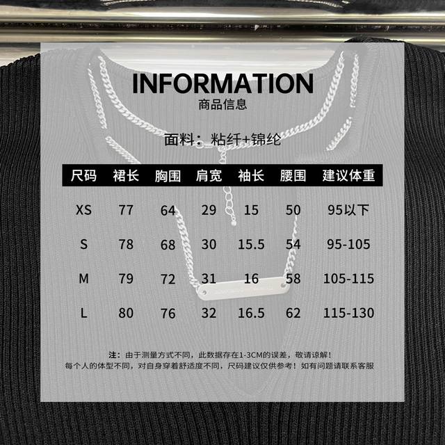 / Actual photos! Latest Aw 25New nameplate necklace knit short-sleeved dress. Siz
