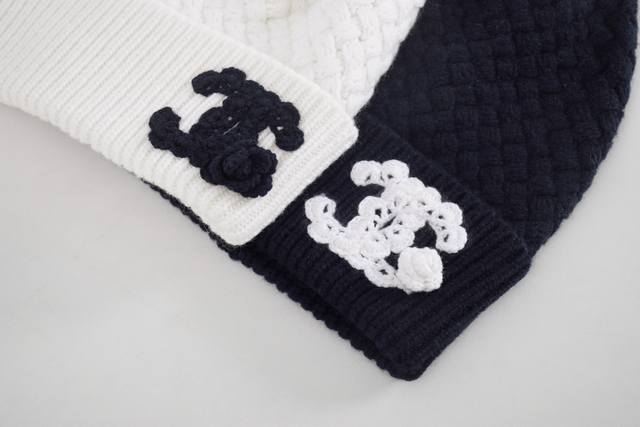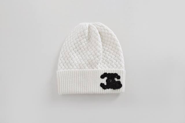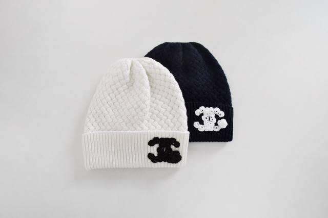 Actual photos! Latest Ch 25New Double C embroidered knitted beanie Color: Black, White Size: Sml