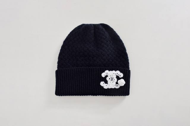 / Actual photos! Latest Ch 25New Double C embroidered knitted beanie Color: Black