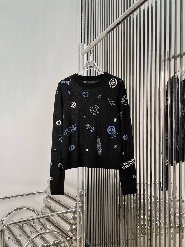 / Actual photos! Latest H 25New Ai Ma graphic jacquard sweater Color: Black, Khak