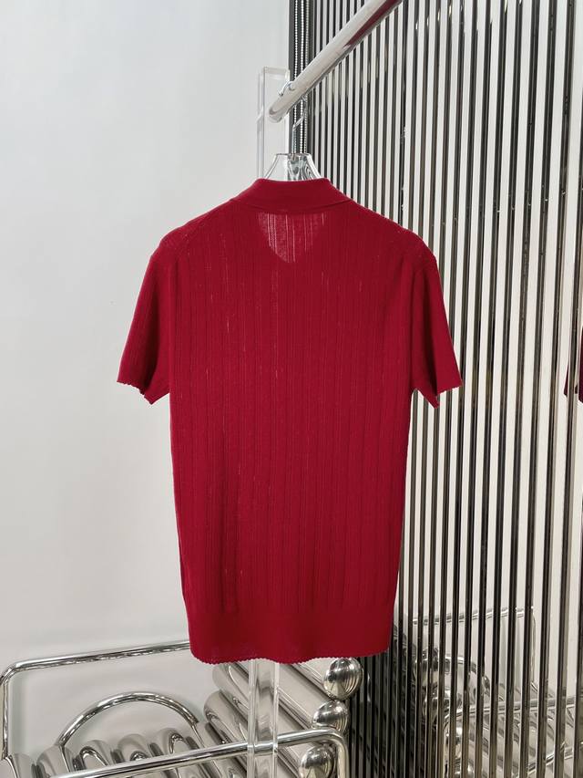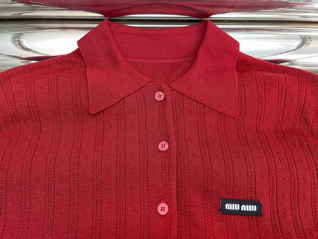 Actual photos! Latest Miu 25New red short-sleeved lapel sweater Size: Sml