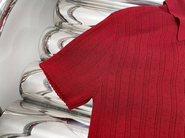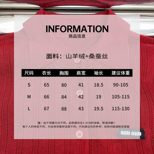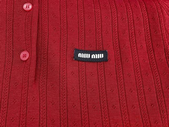 / Actual photos! Latest Miu 25New red short-sleeved lapel sweater Size: Sml