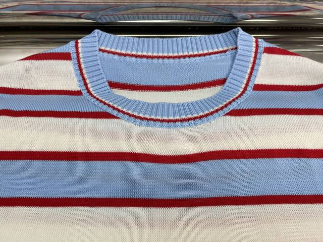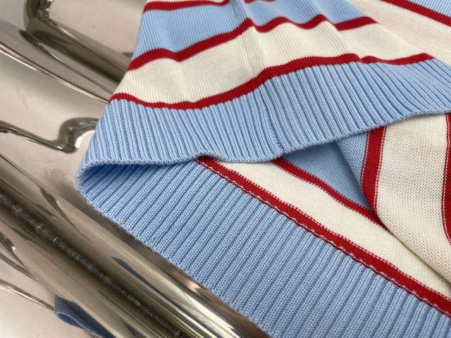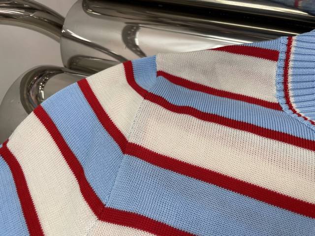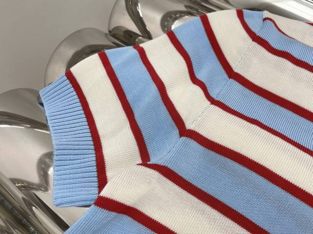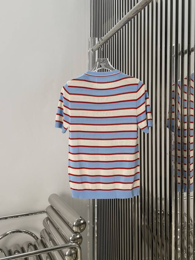 Miumi*2025 Early Fall new striped short-sleeved custom-made YB combed cotton. Ma