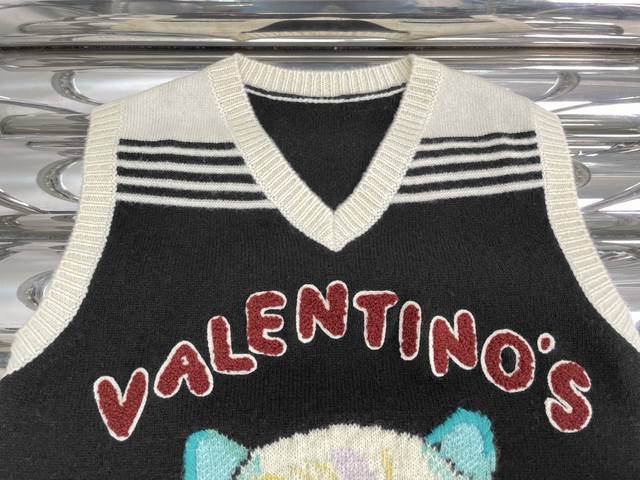/ Actual photos! Latest Valen 25New cartoon cat hand-embroidered knitted vest. Si