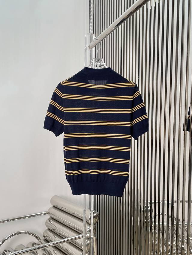 Actual photos of the latest Miu 25New striped knitted polo shirt Size: Sml DDD