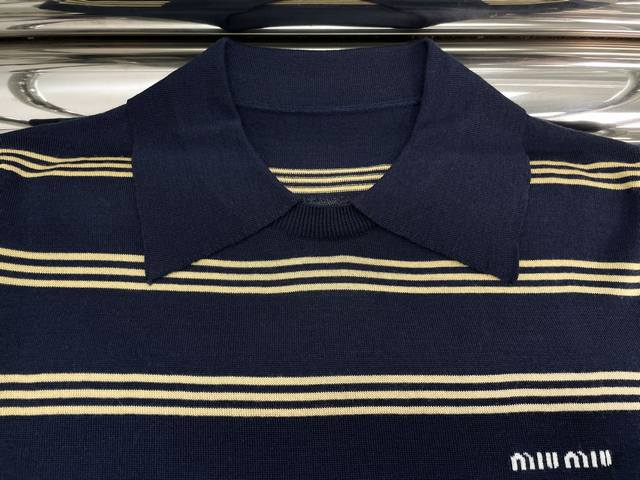 / Actual photos of the latest Miu 25New striped knitted polo shirt Size: Sml DDD