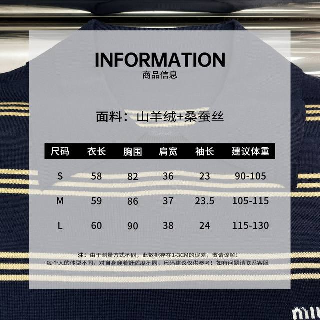 Actual photos of the latest Miu 25New striped knitted polo shirt Size: Sml