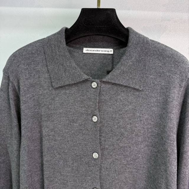 Ale*25's new early fall knitted long-sleeved cardigan features a polo collar tha