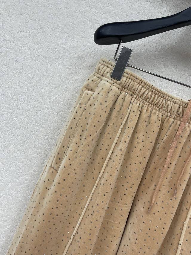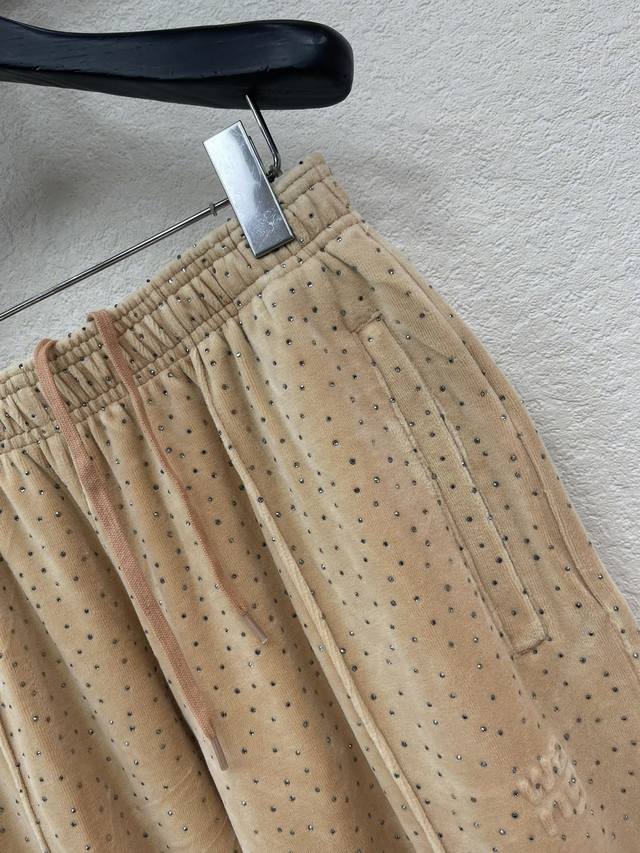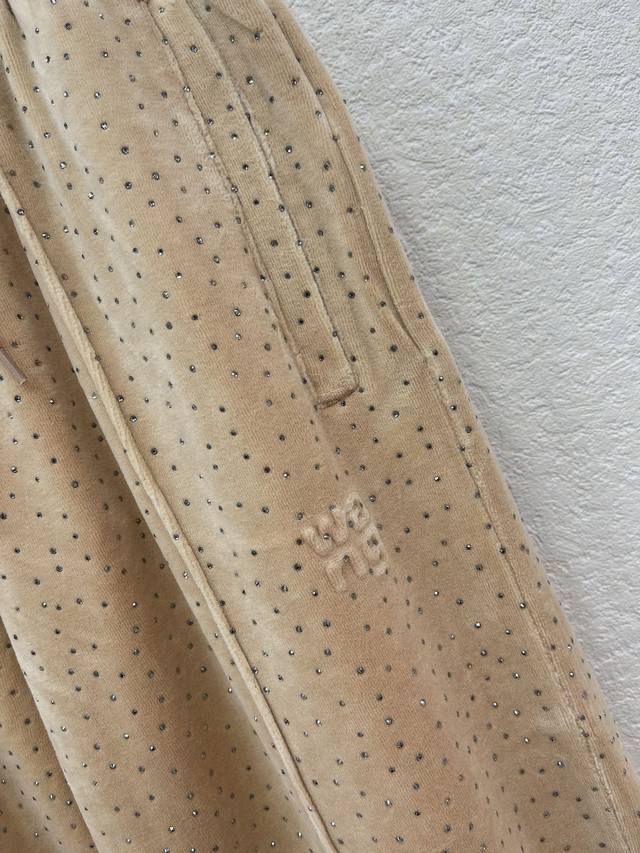 Alexande* Wang's 2026 Early Spring Collection Velvet Rhinestone Trousers. Made with high-quality velvet fabric, soft to the touch and lustrous. The loose, straight-leg cut is both comfortable and stylish. The brand's logo is prominently displayed on the left leg, making it easily recognizable! It's versatile and easy to style, perfect for spring and autumn. Whether for casual everyday wear or trendy looks, it effortlessly exudes style. Sml Aa DDD
