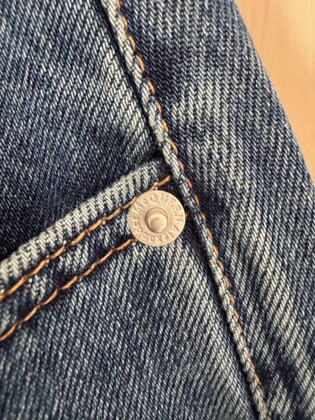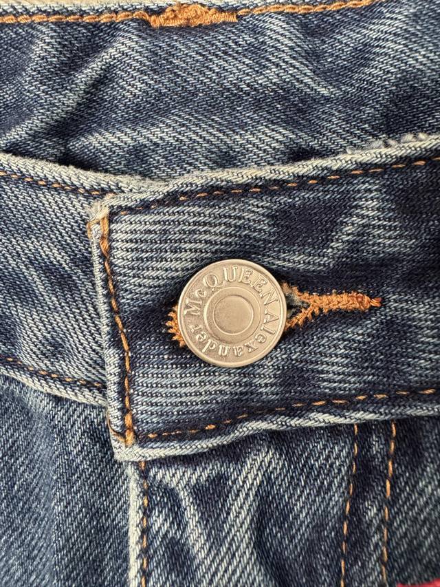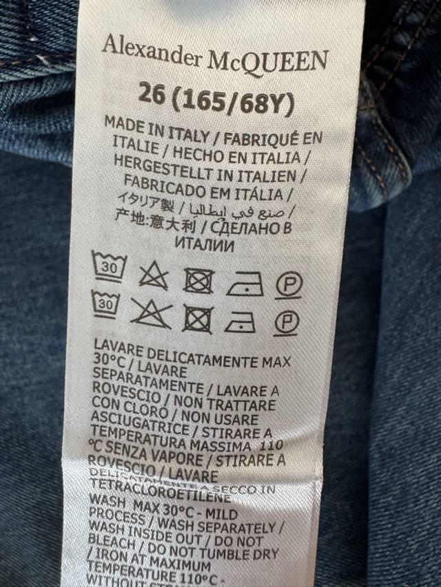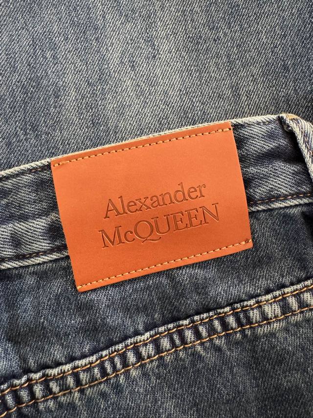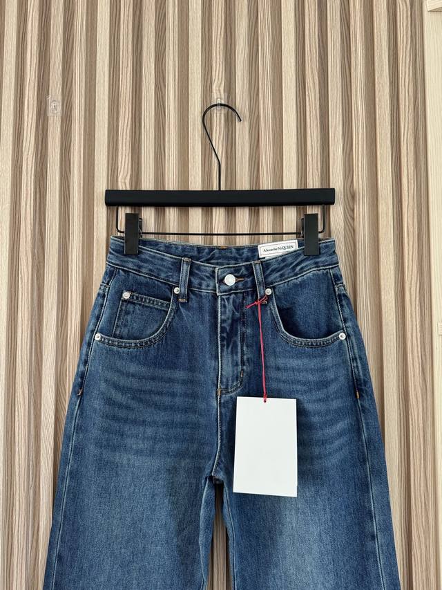 Alexander MacQueen Spring/Summer 2026 minimalist leather-label straight-leg jeans. Vintage washed dark blue, durable and versatile. The straight-leg, high-waisted design is stylish and slimming! Made with custom-imported Turkish pure cotton, the quality rivals high-end luxury brands costing thousands! Soft, drapes beautifully, and wrinkle-resistant! Very comfortable to wear! The perfect length is neat and sleek, effortlessly creating a classic, old-money look! Sizes 24-30 DDD