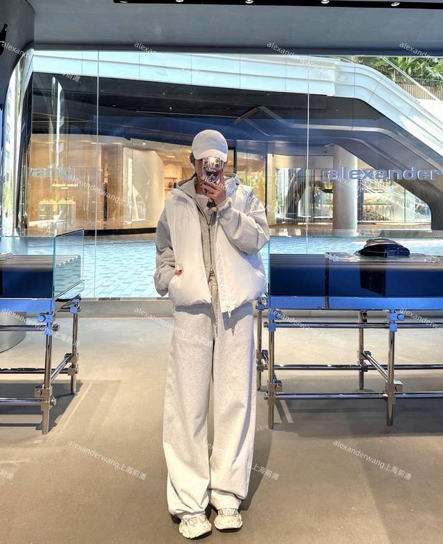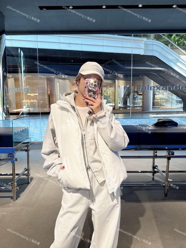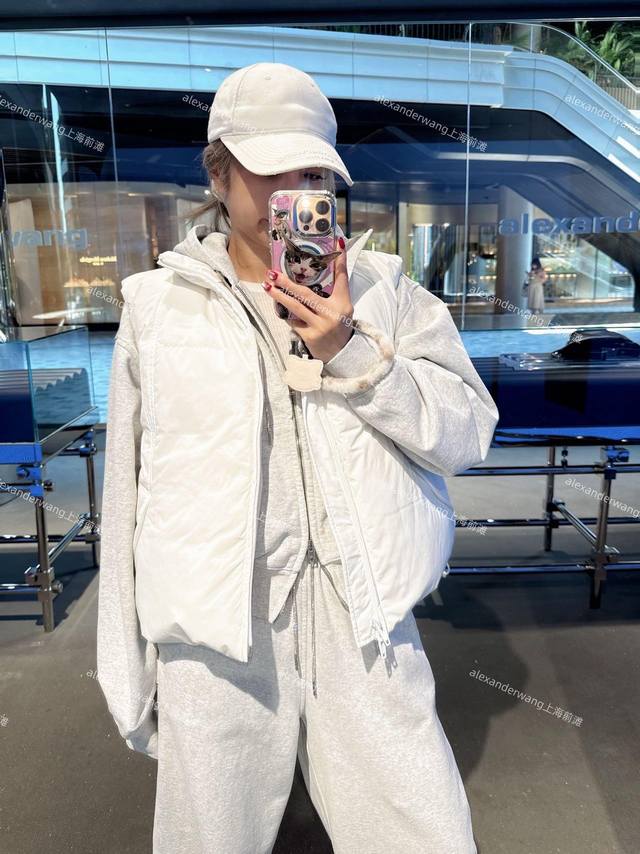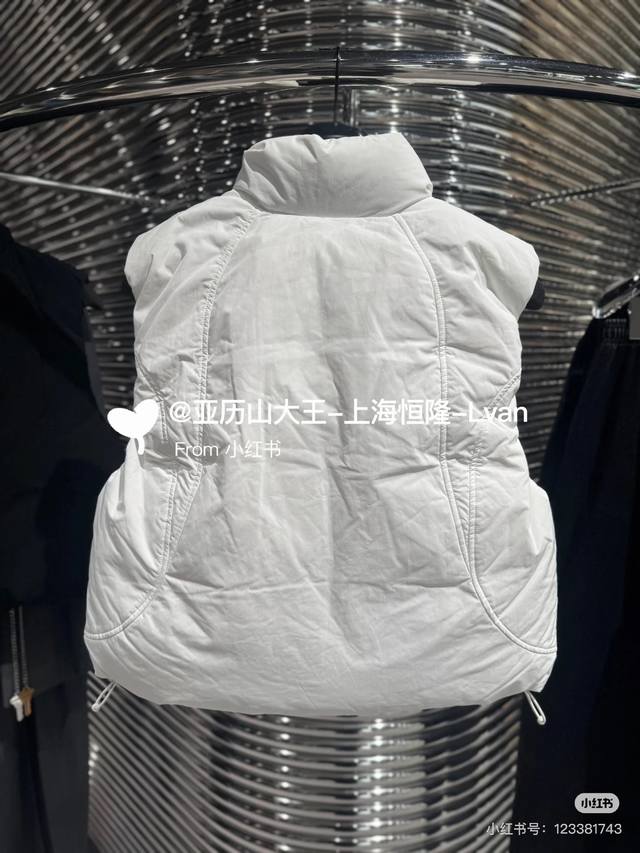 Alexander Wan* New Style Down Vest with Embroidered Logo on Chest, Lightweight and Warm with White Duck Down Filling, Stylish and Simple, Zipper Pockets, Stand Collar! White, Size M: Shoulder Width 45cm, Chest 110cm, Length 55cm.