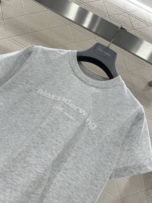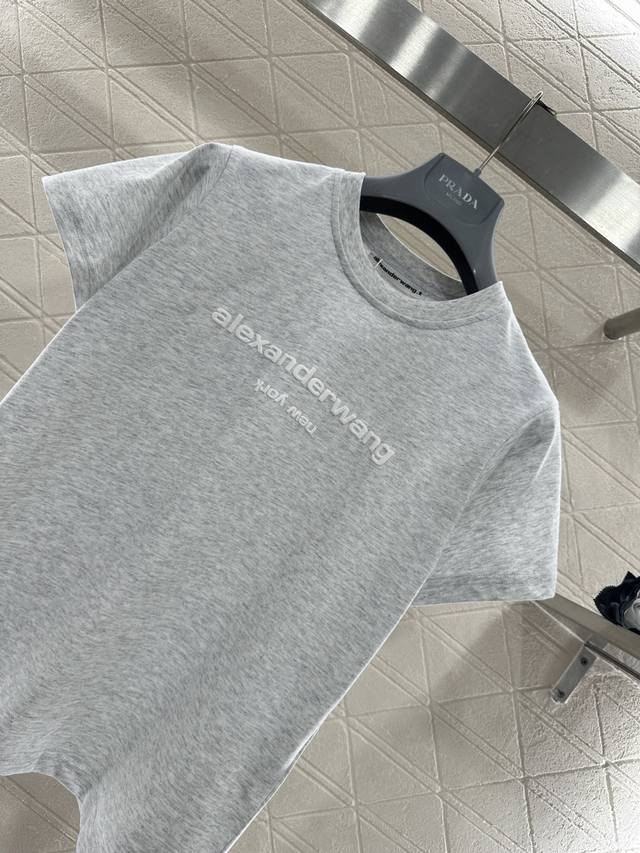Alexander Wan*2026 New Arrival Ddd Crew Neck Bubble Print Logo Ddd Custom Yb Mercerized Cotton, Textured and Lustrous, Stretch and Comfortable, Slim Fit Short Sleeve Cut, Slimming and Stylish, Available in White, Pink, Gray, and Black for All Seasons, Inverted Bubble Print Lettering for a Cool and Trendy Look, The Short Cut Easily Creates a High Waistline, Whether Paired with Cargo Pants or a Skirt, It Creates a Casual and Sexy Street Style Look, A Must-Have Basic Item for Your Wardrobe - Stylish and Versatile. Custom Fabrics and Accessories, High-Version, 4 Colors: Light Gray, White, Pink, Black. DDD