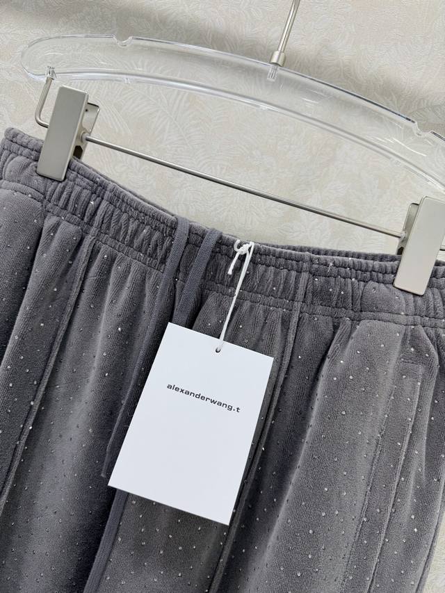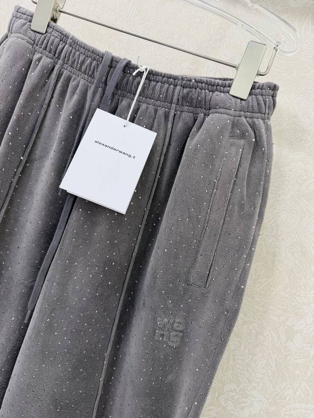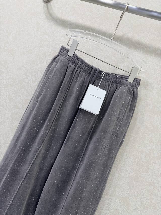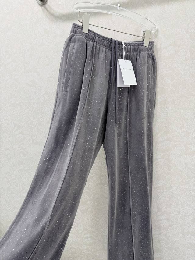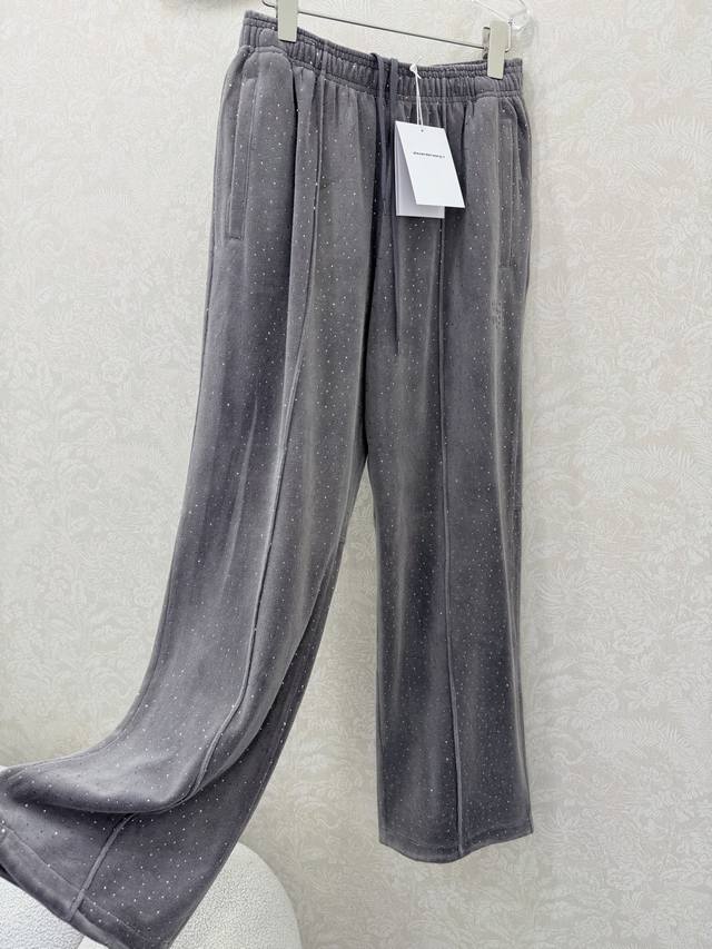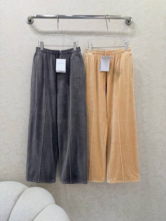 Alexander W*Ng 2026 New Arrival: Velvet Rhinestone Wide-Leg Trousers with Unique Elements. Elastic waistband and wide-leg design for a super slimming effect! Custom imported pure cotton velvet with rhinestone embellishment for a luxurious and shimmering feel! A versatile and flattering choice that's incredibly slimming! Highly recommended! Original custom-made craftsmanship and quality evident in the details! Trousers available in 2 colors and 3 sizes.