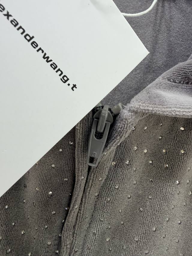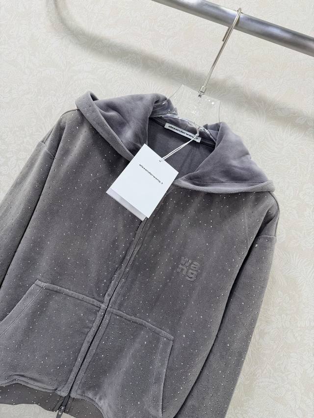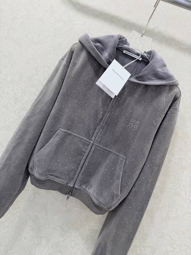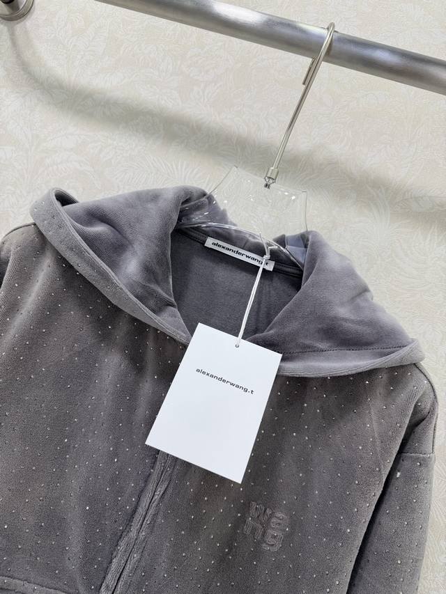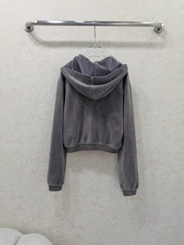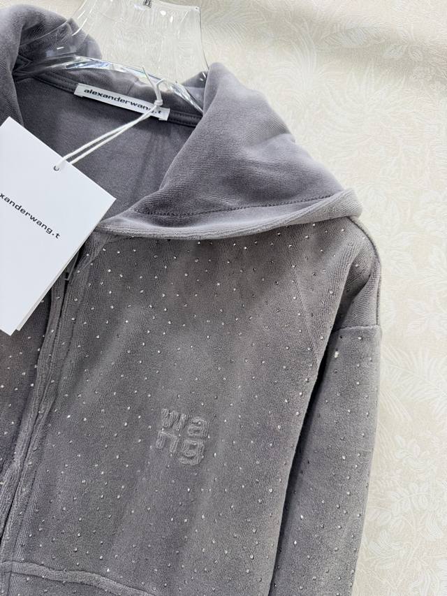 Alexander W*Ng 2026 New Style Velvet Rhinestone Hooded Jacket! New arrival in the series, double zipper, short and fitted waist design, super slimming! Custom imported pure cotton velvet with rhinestone embellishment, sparkling luxurious texture! Versatile, flattering, and incredibly slimming! Highly recommended! Original custom-made workmanship, quality evident in the details! Jacket available in 2 colors and 3 sizes.