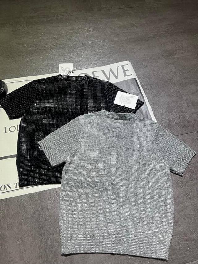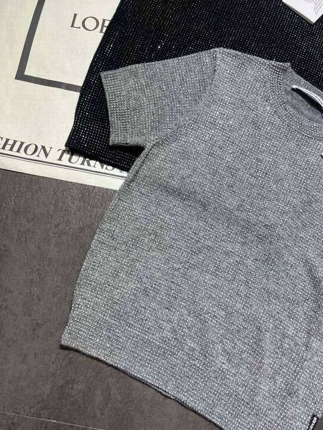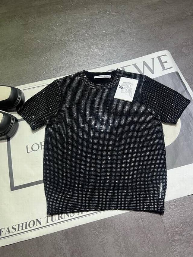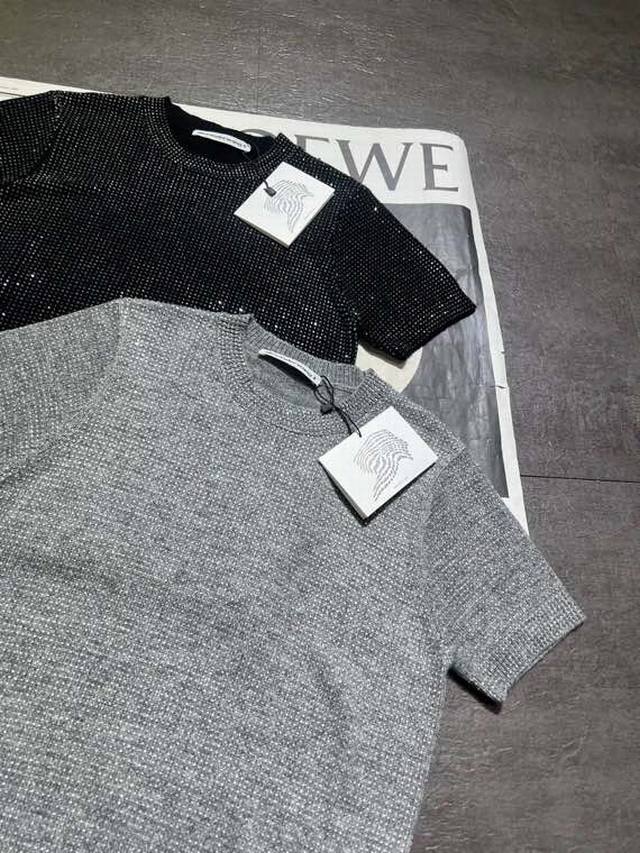 Alexanderwan* Pressure Mountain King 25 early autumn new full diamond round neck short sleeves, customized wool hot diamond soft and comfortable without irritating the skin, super beautiful super shiny super gentle, two colors SML
