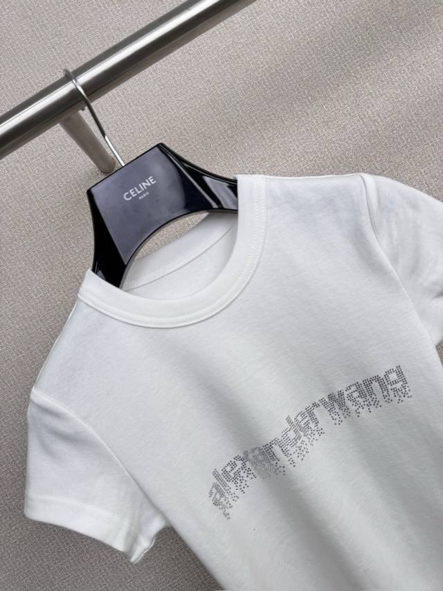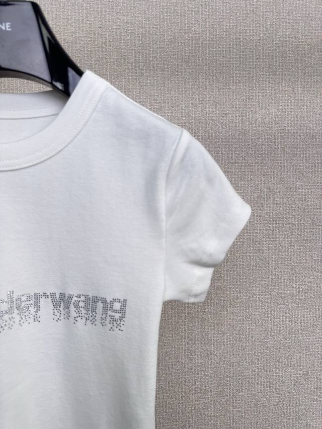 Alexanderwang's new autumn and winter rhinestone letter T-shirt is so popular. The rhinestone lettering "Aw" on it is unique and exquisite, as if hiding its own fashion secrets, which instantly gives the whole garment a soul and completely distinguishes it from ordinary white T-shirts. The version is a very thoughtful slim design that can naturally fit the body lines, easily showing off your figure without feeling restricted. Pair it with a pair of denim shorts for a simple yet fashionable look. Whether you are going shopping, hanging out with friends, or having afternoon tea, it is super suitable. This short-sleeved shirt is really versatile and good-looking. It looks good on everyone . Size Sml