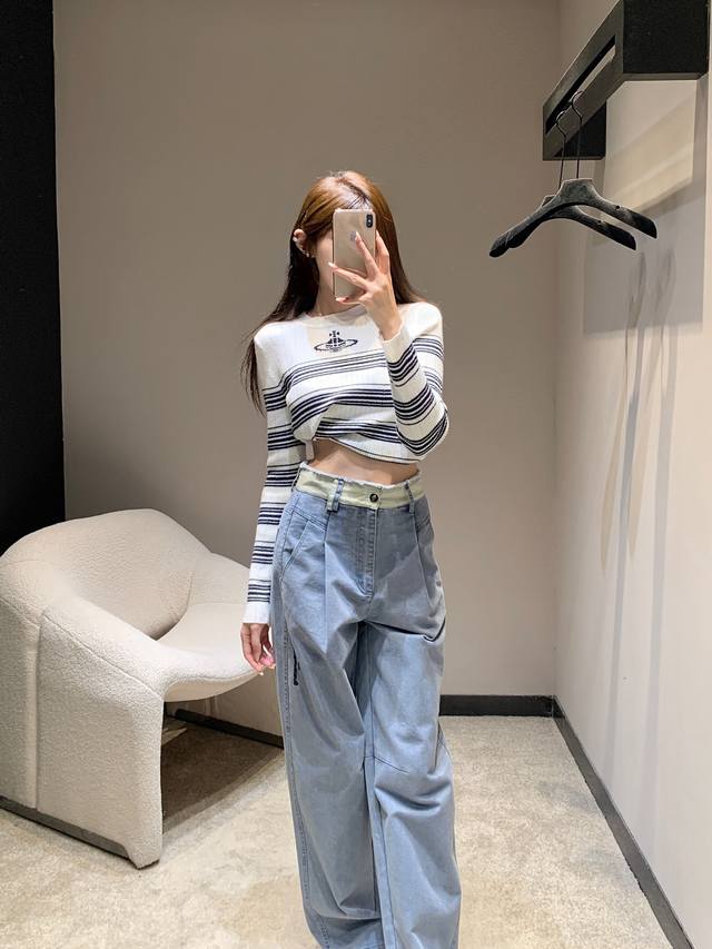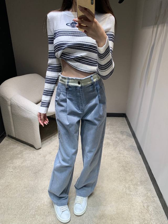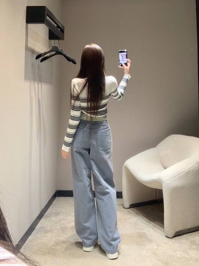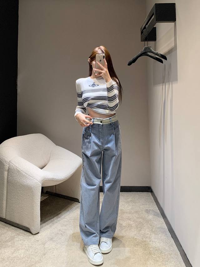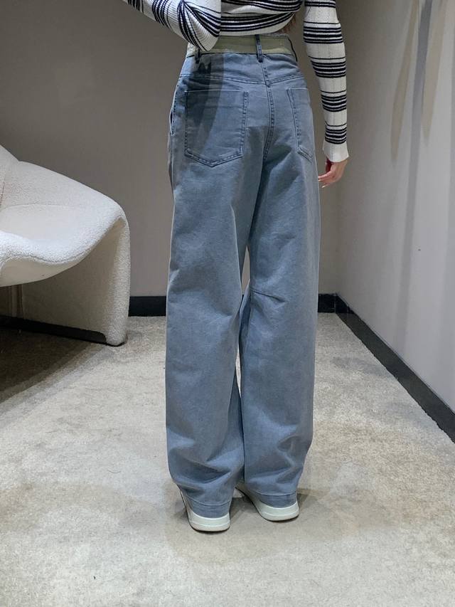 Alexand*R Wang 25Fw Autumn/Winter New Arrival Color-Blocked Frayed Hem Jeans | Exclusive High-Waisted Version! So stylish! The light blue version features distressed denim fabric with a retro vibe, a high-waisted wide-leg cut that easily flatters the legs, and delicate lettering embellishments on the side for maximum detail. The light pink version has a gentle tone that's incredibly appealing to girls, also a high-waisted wide-leg cut with amazing drape, flowing gracefully and making legs look longer. Whether paired with a cropped top to show off your waistline or with a loose sweatshirt for a casual look, it's a perfect match. Available now in sizes S, M, L, D.D.