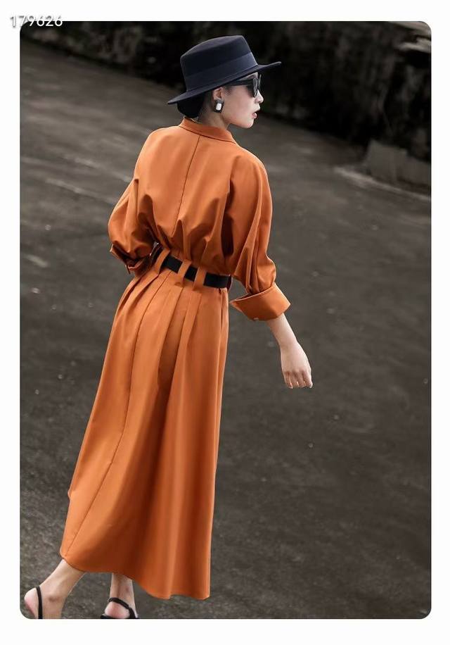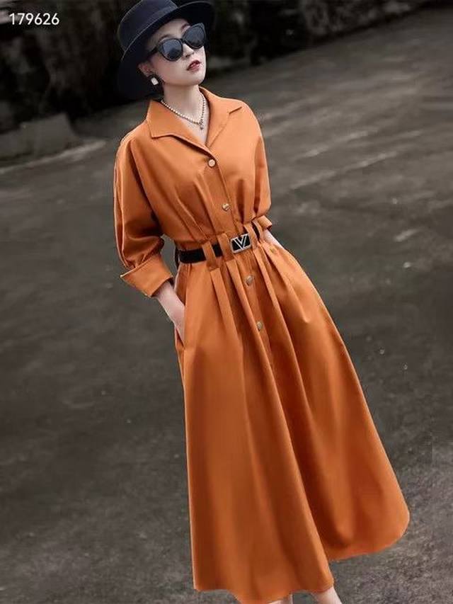 All overlock sewing process, heavy-duty four-button buckle, exquisite workmanship, included, hot-drilled belt, elegant waist-hugging trench coat dress, two-tone, four sizes Smlxl