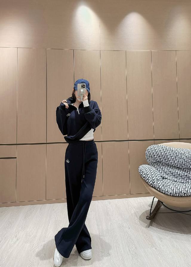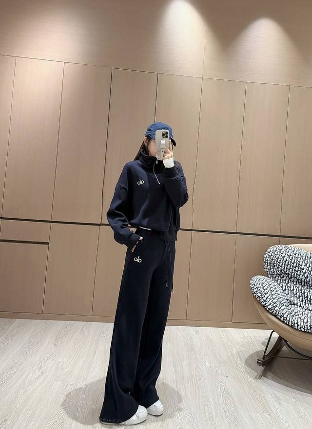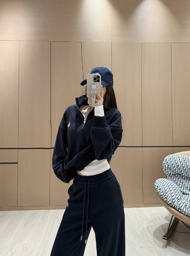 2025 early autumn new Alo sports casual suit half-zip stand collar sweatshirt casual pants daily wear advanced tone and cool!
