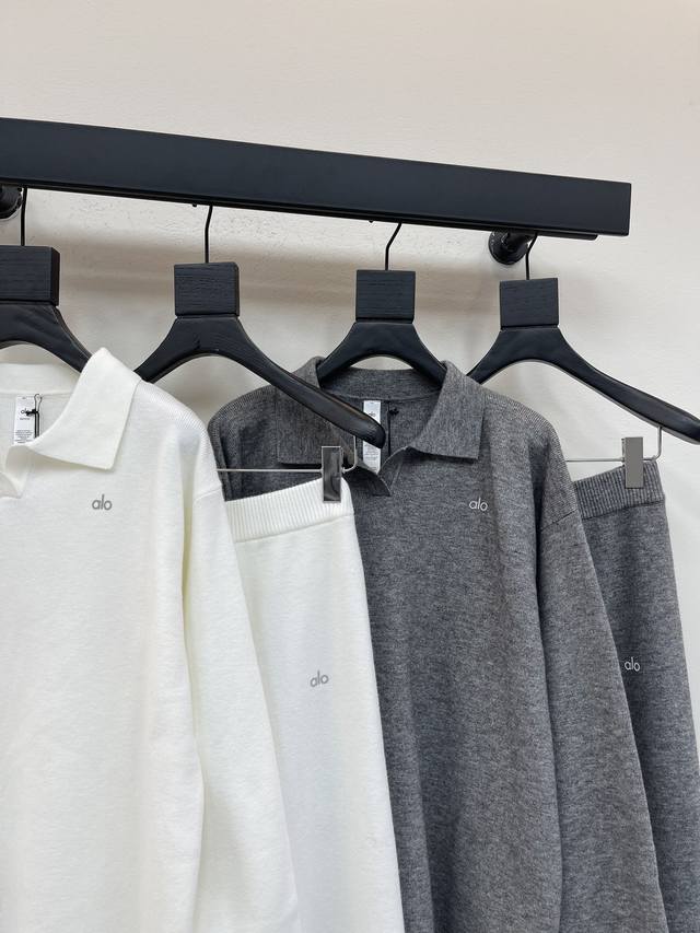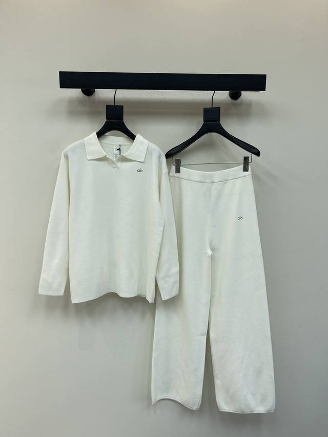 Alo*25 New Autumn/Winter Polo Knitted Sweatshirt and Pants Set Custom Made of High-End Materials, Comfortable and Skin-Friendly, Embellished with the Signature Lettering, Loose and Relaxed Fit Highlights the Brand's Style, Exquisite Design Exudes a Premium Feel. Stylish and Stylish Set with Custom Fabric and Accessories, High Edition Sml Aa.