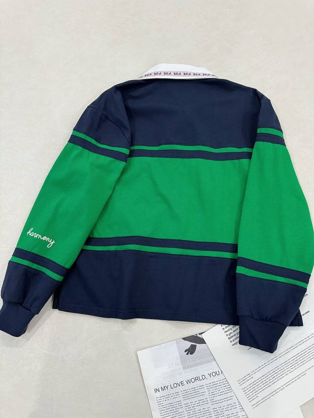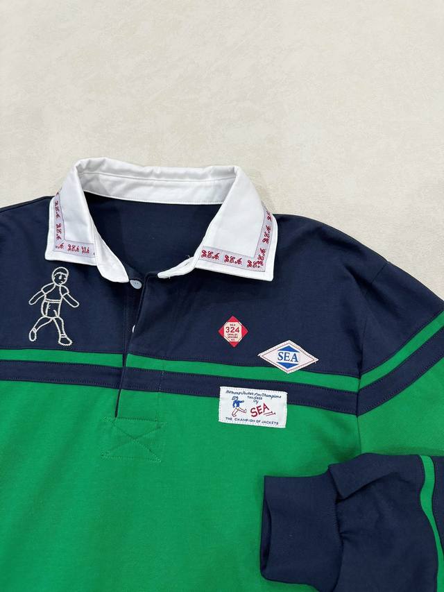 American sportswear style... DDD's latest color scheme: blue-green polo collar embroidered sweatshirt. Embroidered lettering and minifigure patterns combined with unique label patches and appliqu