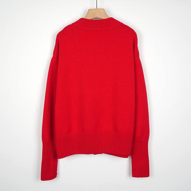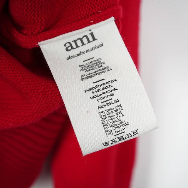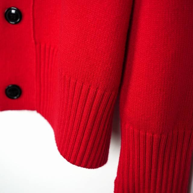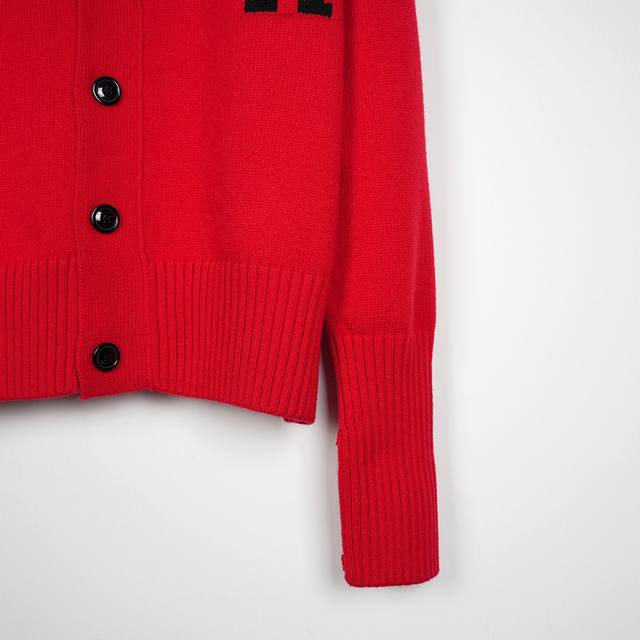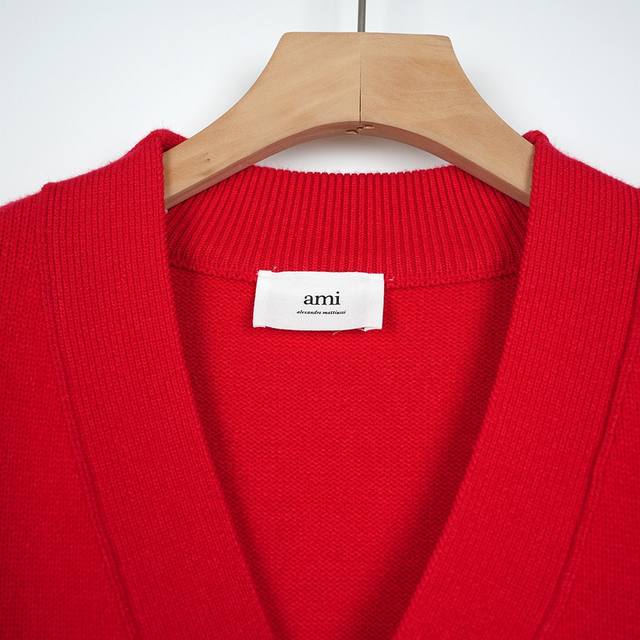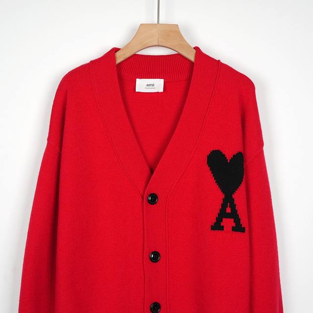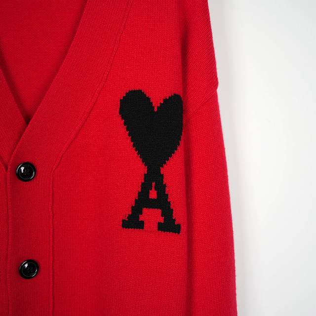 Ami new color red with black heart wool V-neck four-button cardigan, loose versi