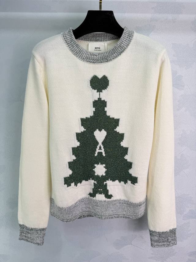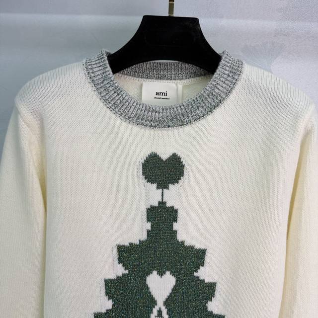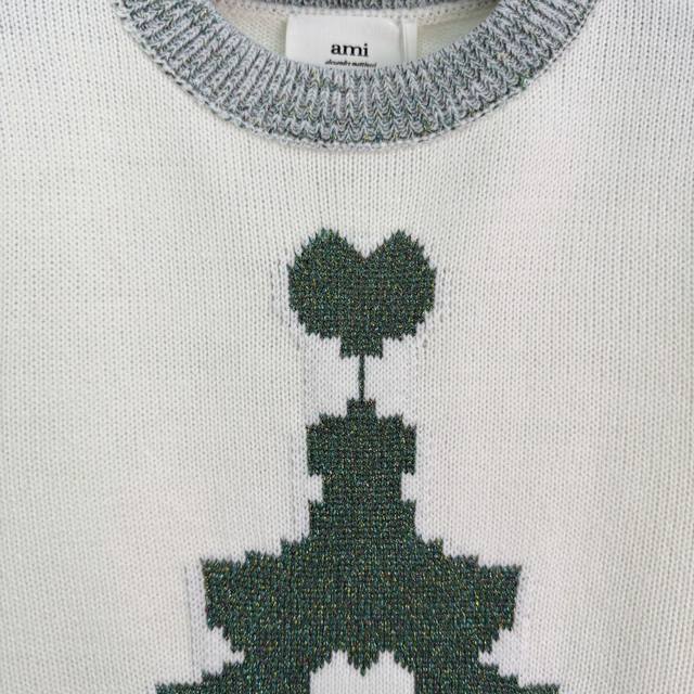 Ami*2025 Autumn/Winter New Heart-Shaped Knit Pullover Sweater! A Christmas limited edition, made of custom wool knit material with a fine knit density, offering a clear, soft wool texture that is comfortable against the skin. The round neck and dropped shoulders create a relaxed, effortless look. Ribbed cuffs, collar, and hem provide excellent elasticity for comfortable wear. A centrally placed Christmas tree heart crochet decoration on the chest adds a touch of design sophistication. The loose fit is forgiving and creates a stylish look! Available in 2 colors and 3 sizes: S, M, L, T226B. DDD