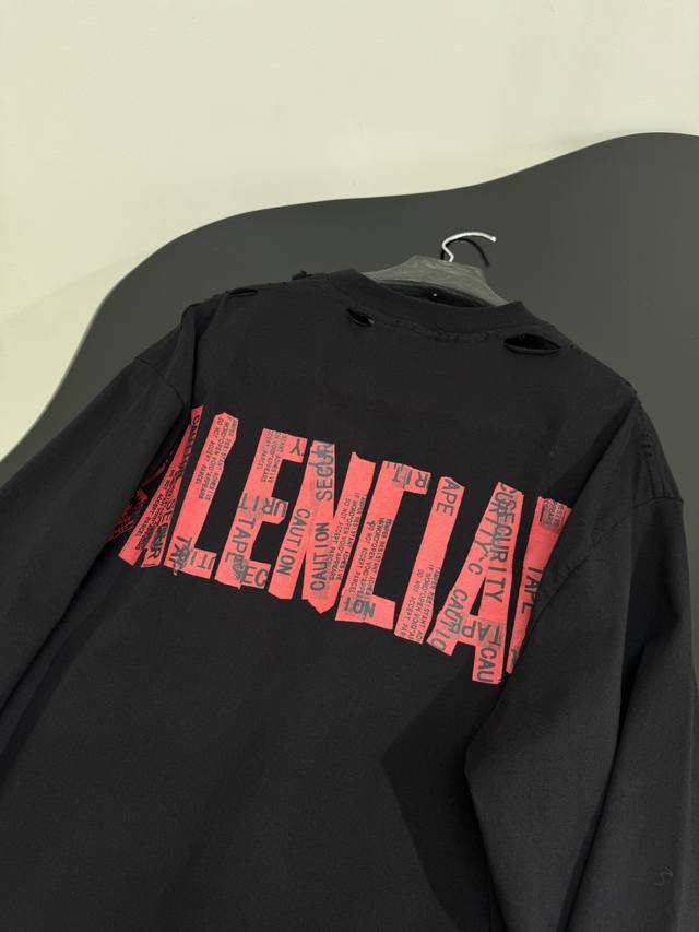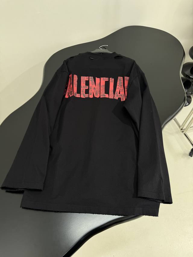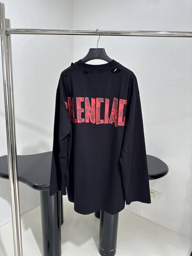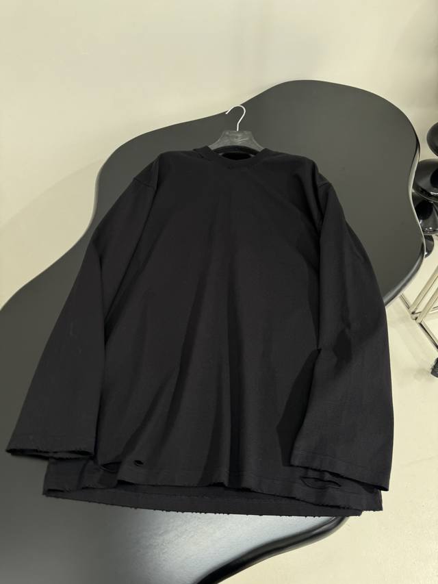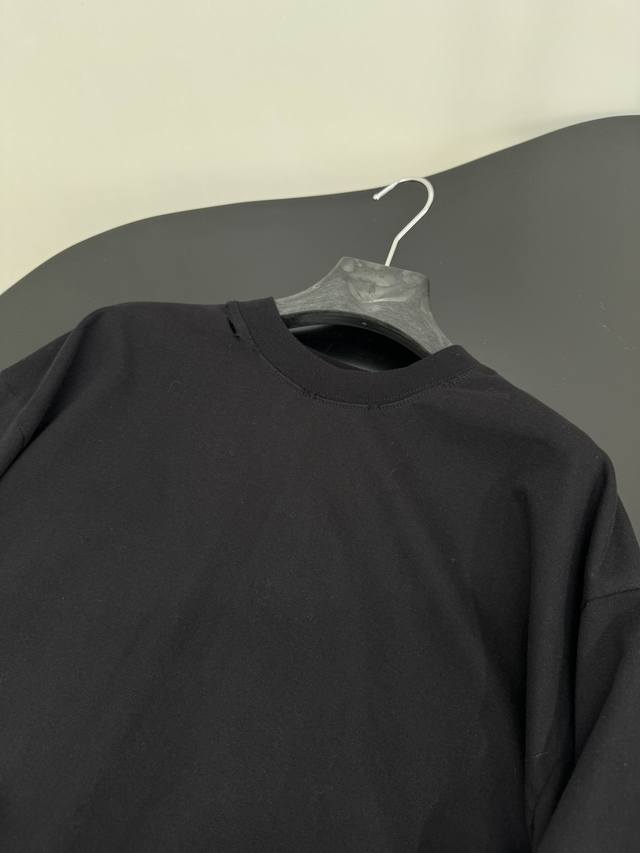 Artificial Adhesive Long-Sleeve Crew Neck T-Shirt DDD Custom Dye Retro Plain Weave Fabric DDD 2025 New Style Tape Type Logo on Back, Artificial Adhesive 3D Visual Effect DDD Worn Wash Effect, Loose Fit DDD Hot Selling Fit DDD Unisex DDD : Washed Black DDD : DDD