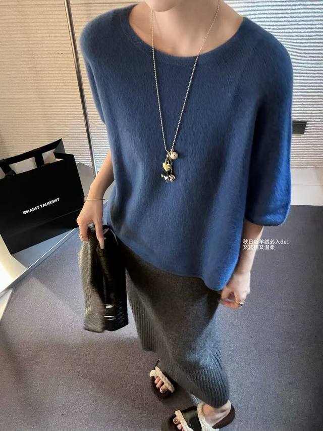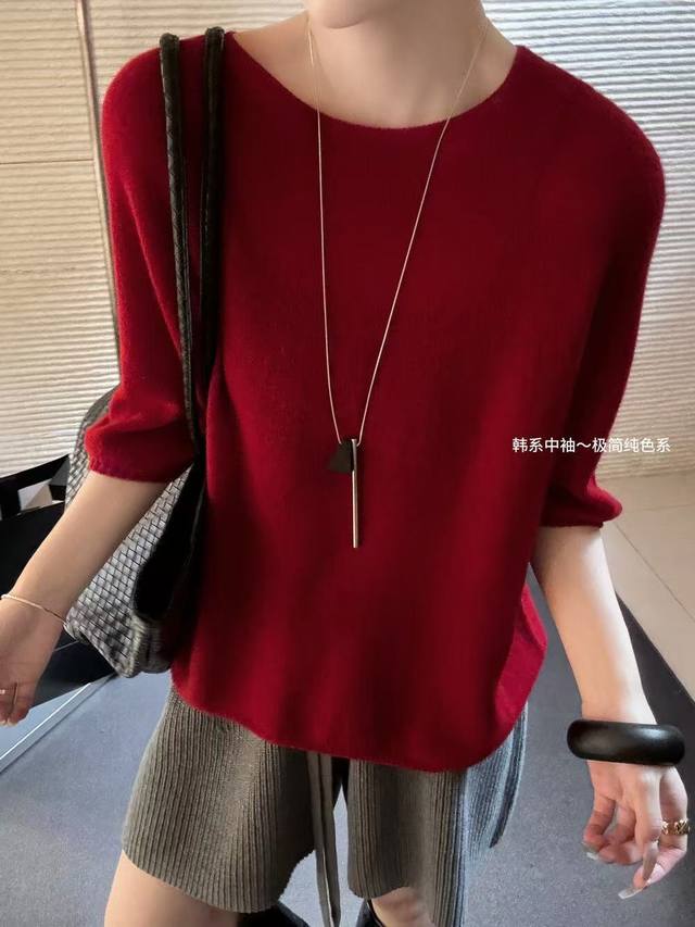 / Atmosphere color Korean style silk cashmere short-sleeved sweater All wool one
