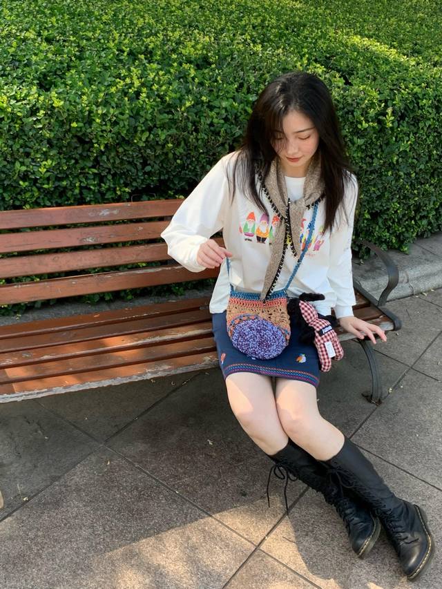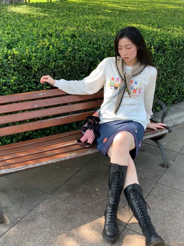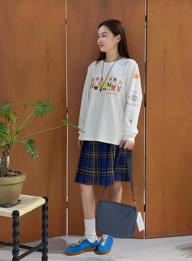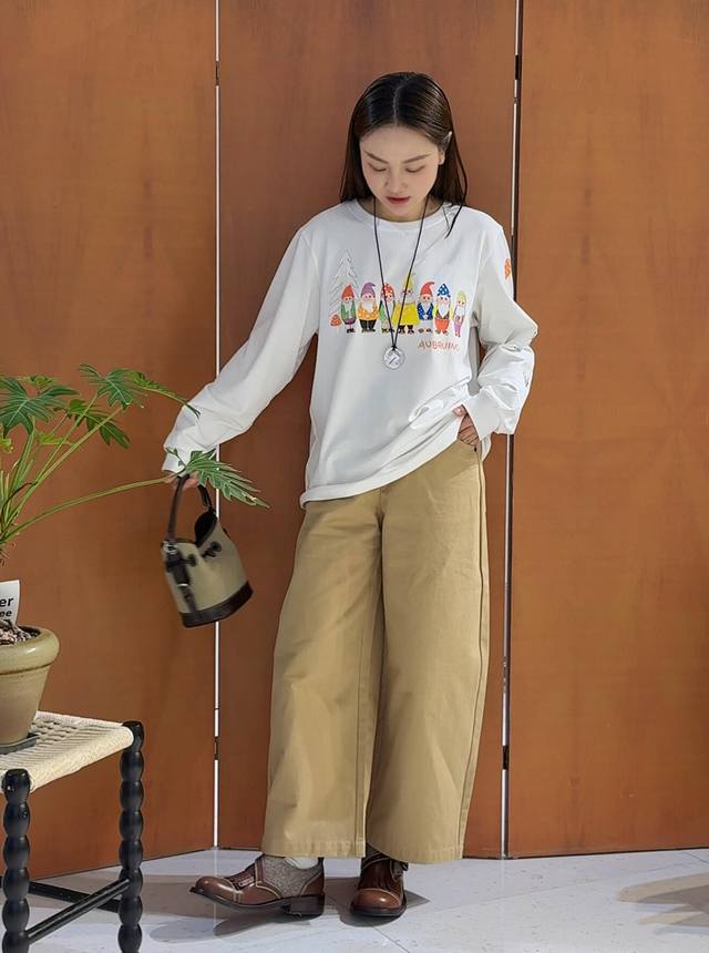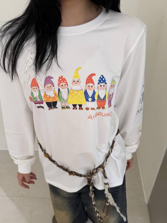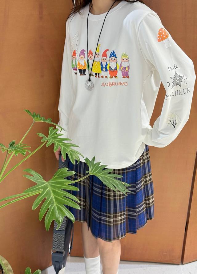 Aubruino 25Fw Early Fall New Letter Embroidered Dwarf Print Crew Neck Sweatshirt
