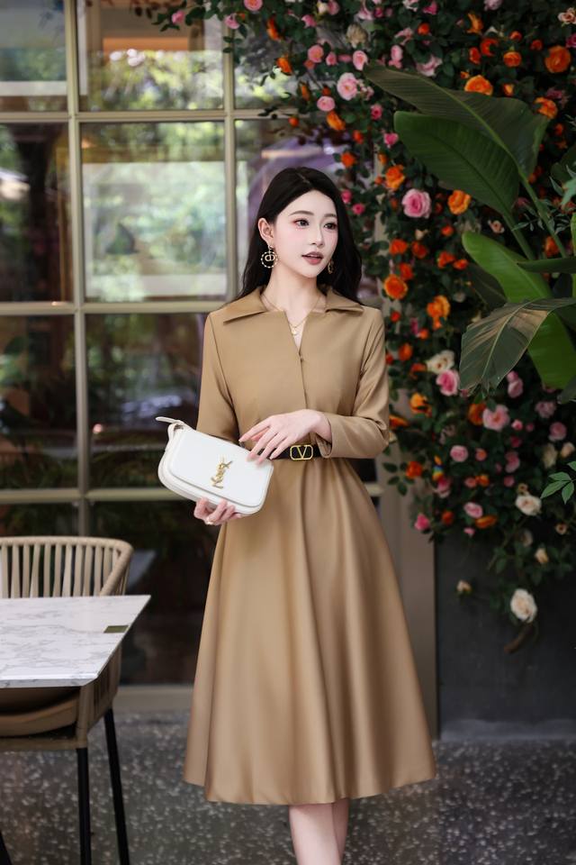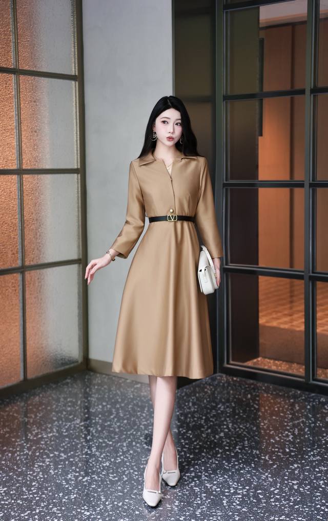 Autumn and winter new style celebrity high-end atmosphere classic slimming temperament long skirt high-end quality, fashionable tall, elegant atmosphere, pink, khaki, Smlxlxxl