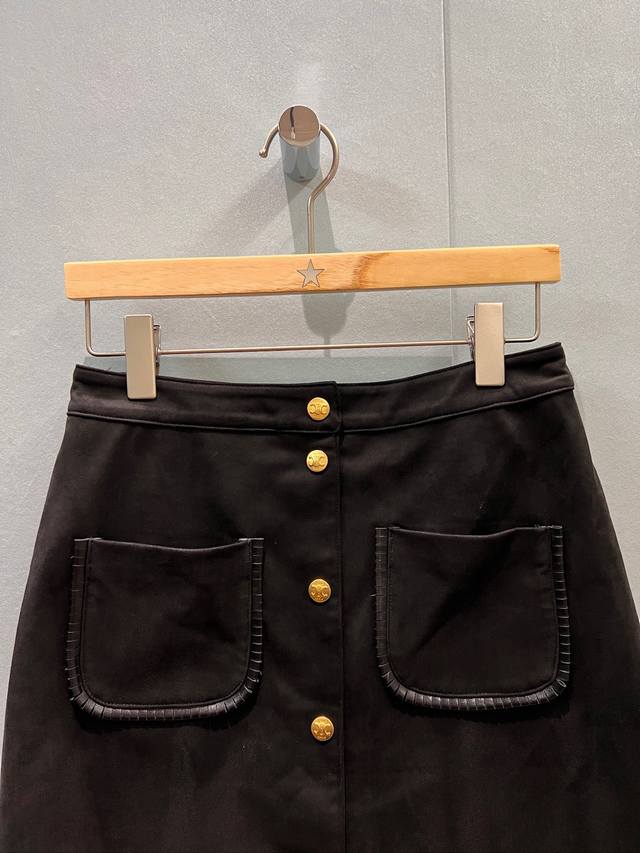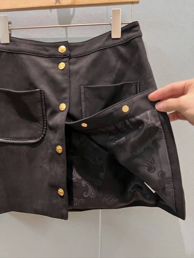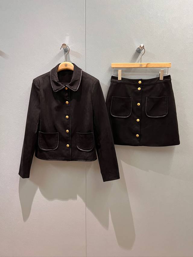 Autumn and winter new style Pei Zhixiu same suede gold button jacket A-line skirt cut leather edge decoration design Arc de Triomphe logo gold button jacquard lining temperament age reduction Sml jacket skirt