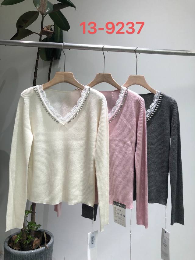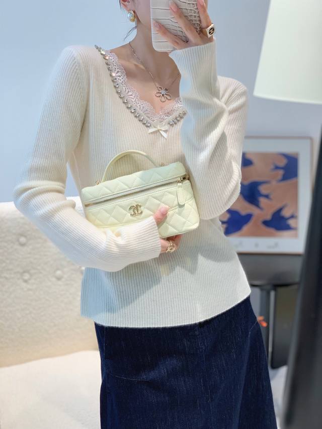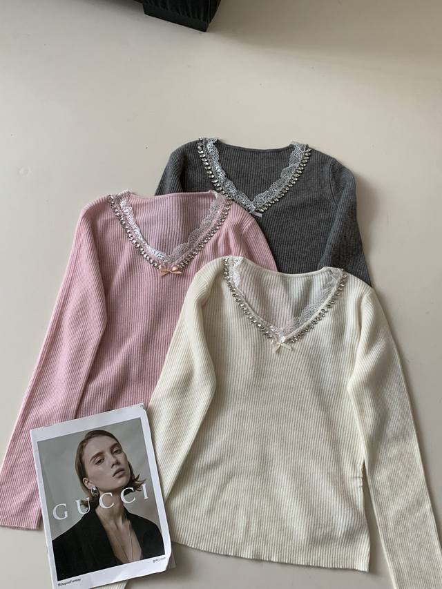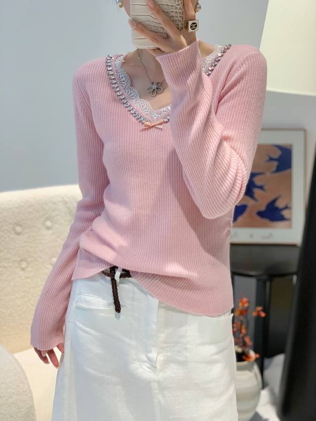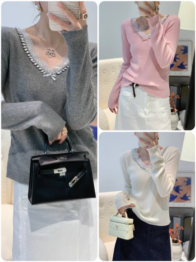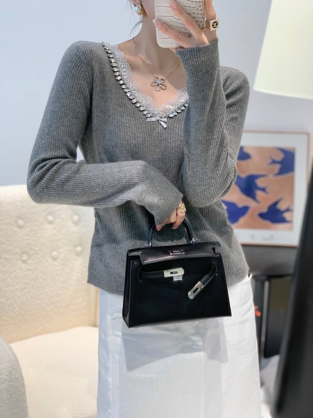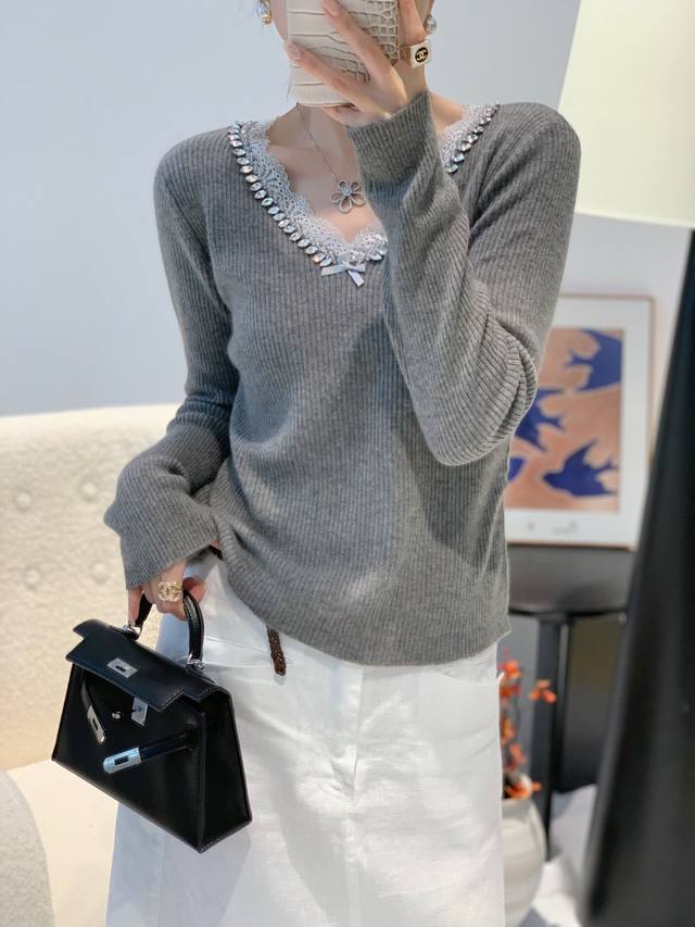 Autumn new 33 cashmere V lace sweater one size