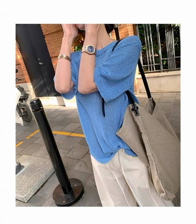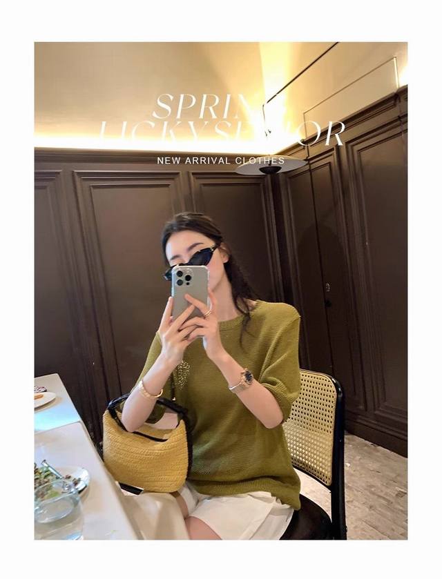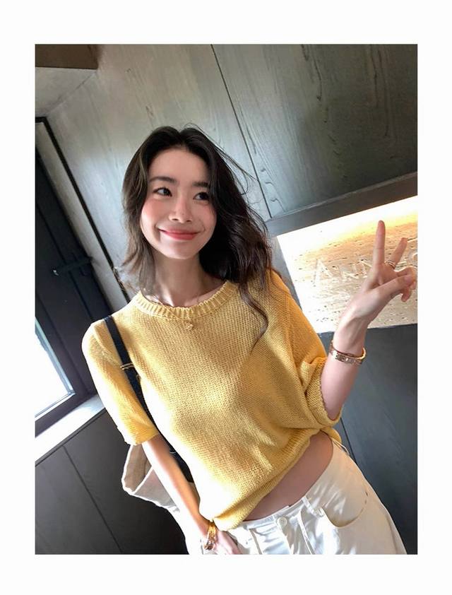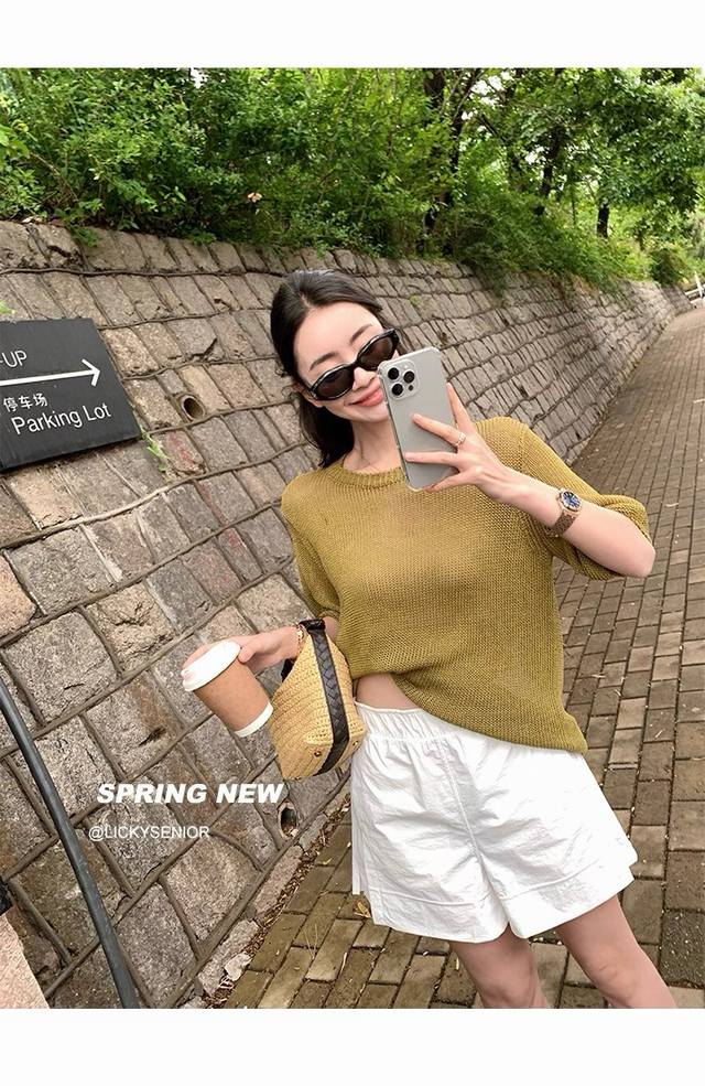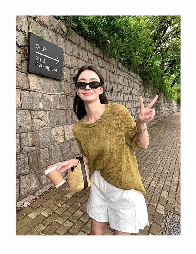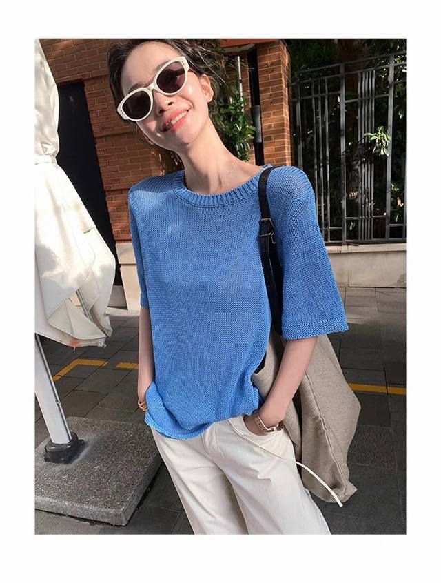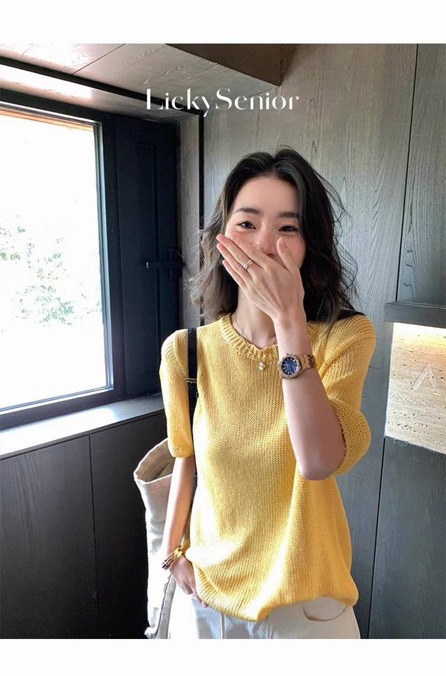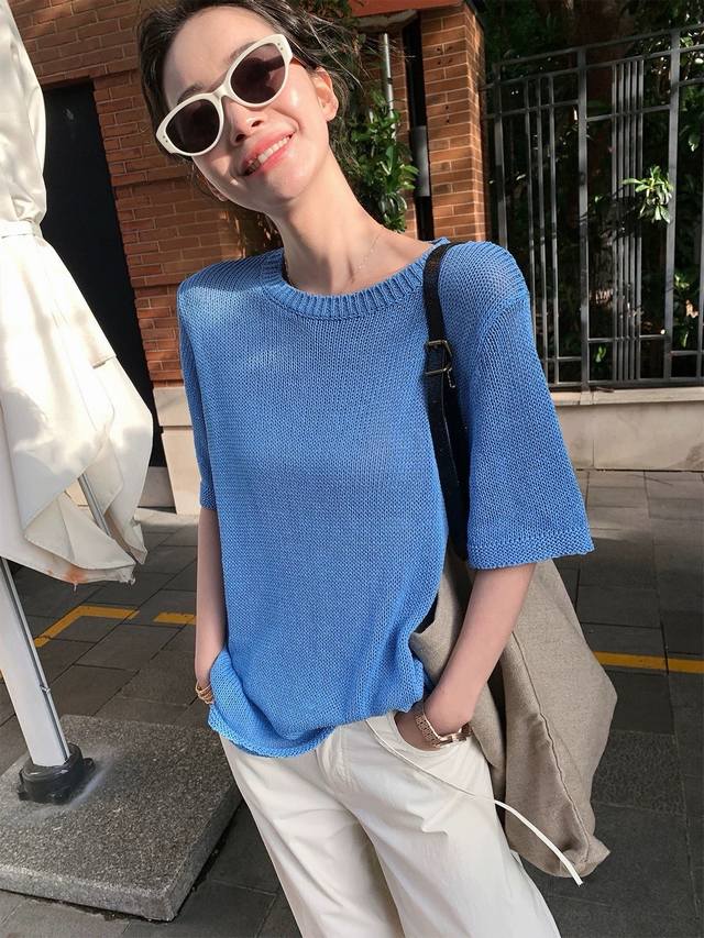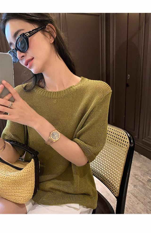 Autumn new and paper yarn round neck mid-sleeve top One size DDD