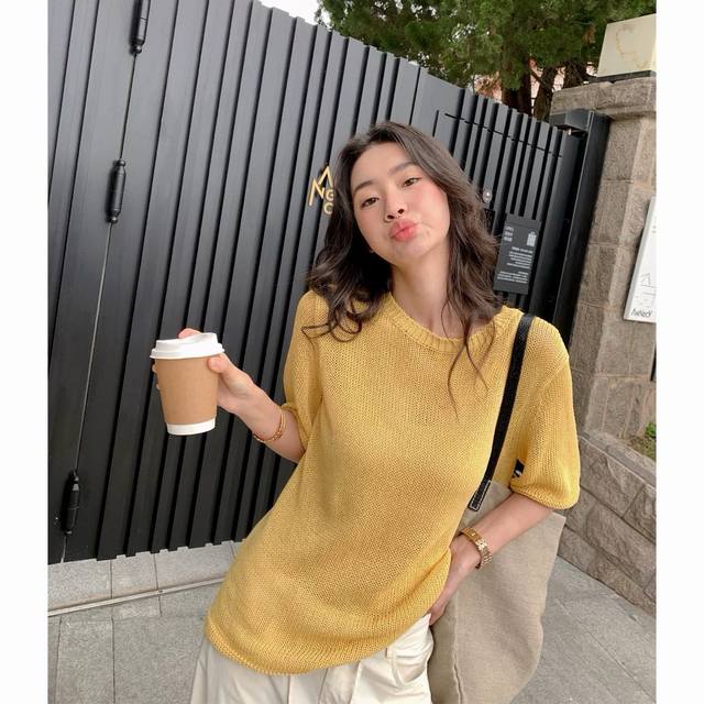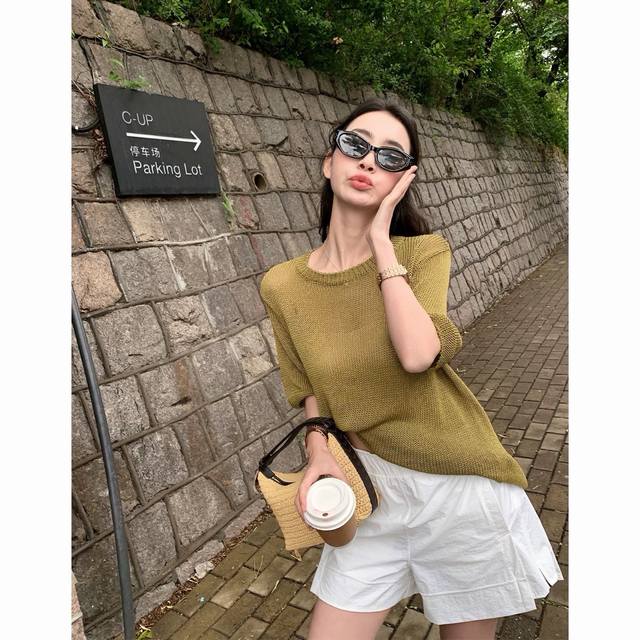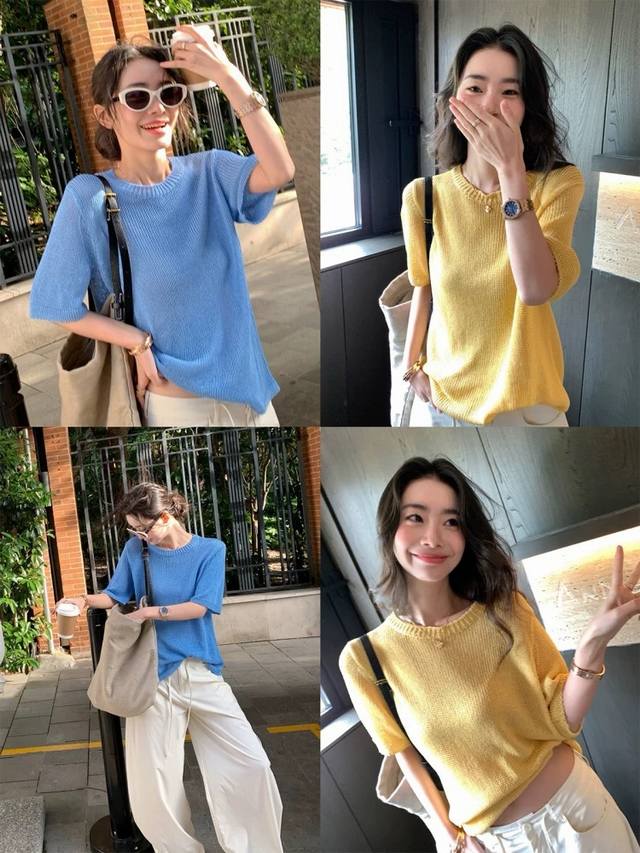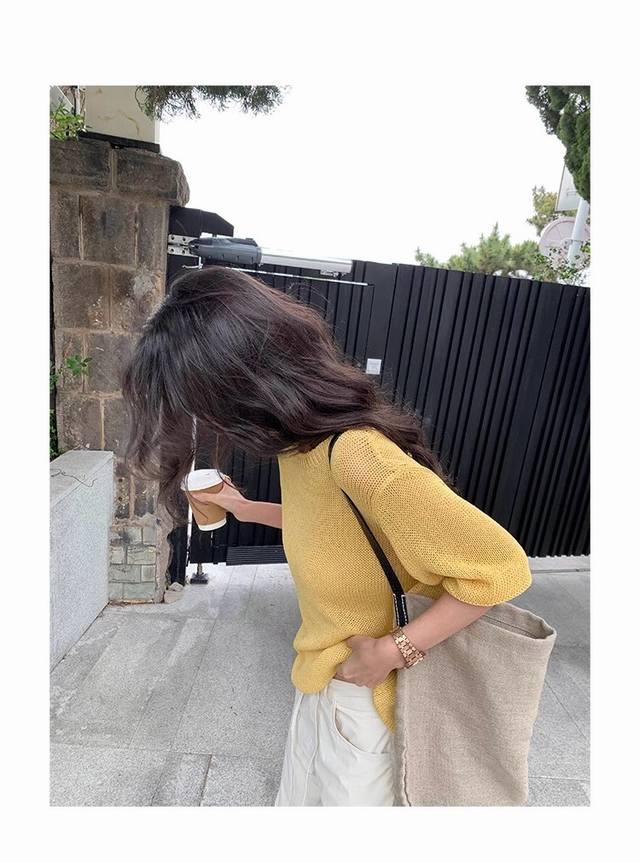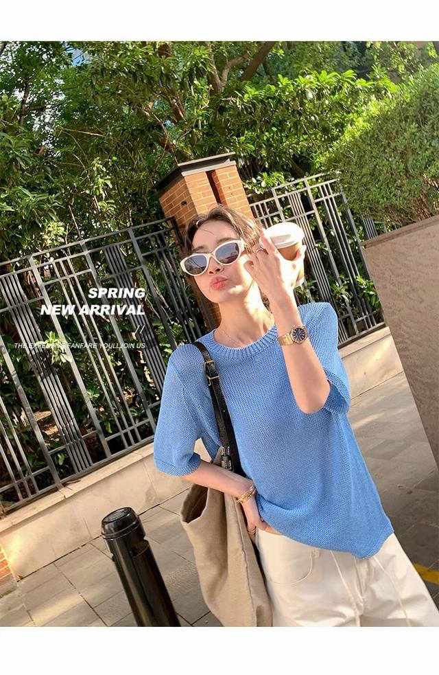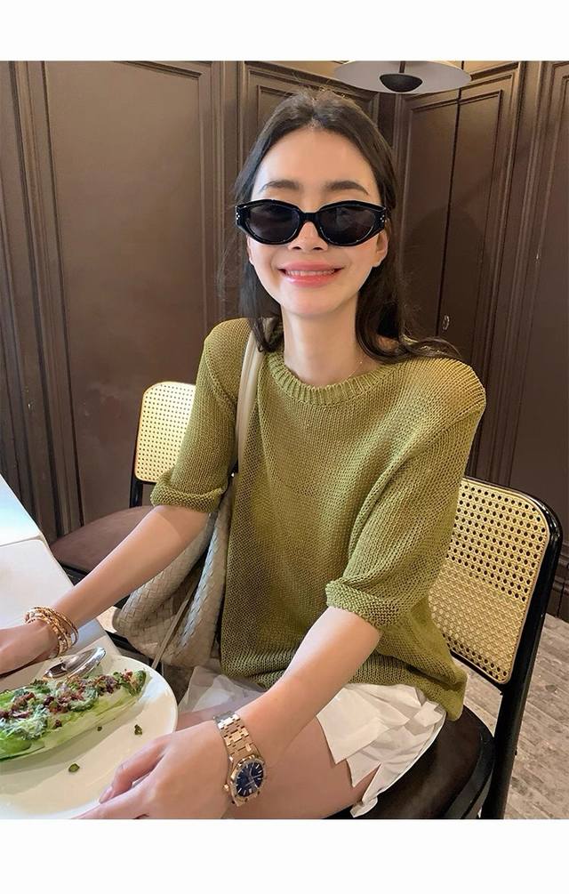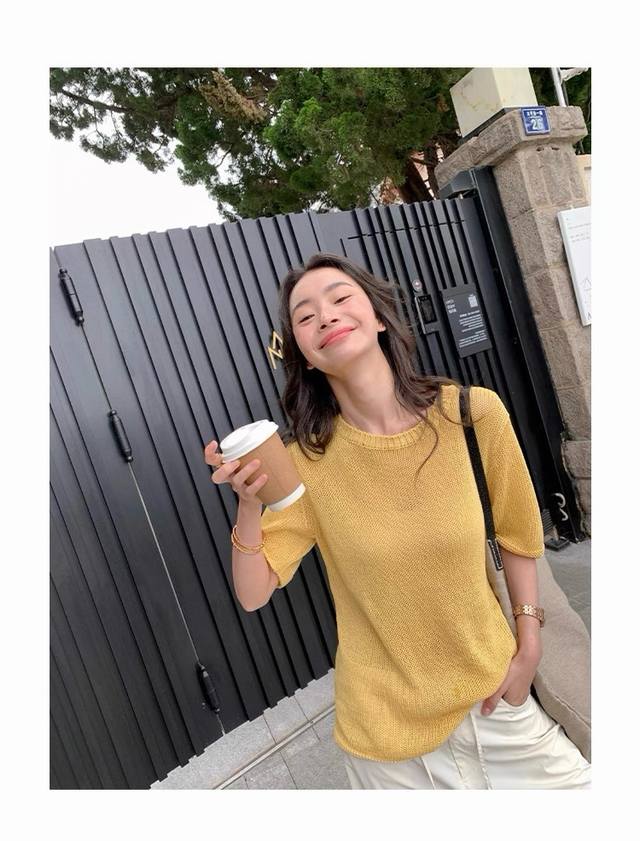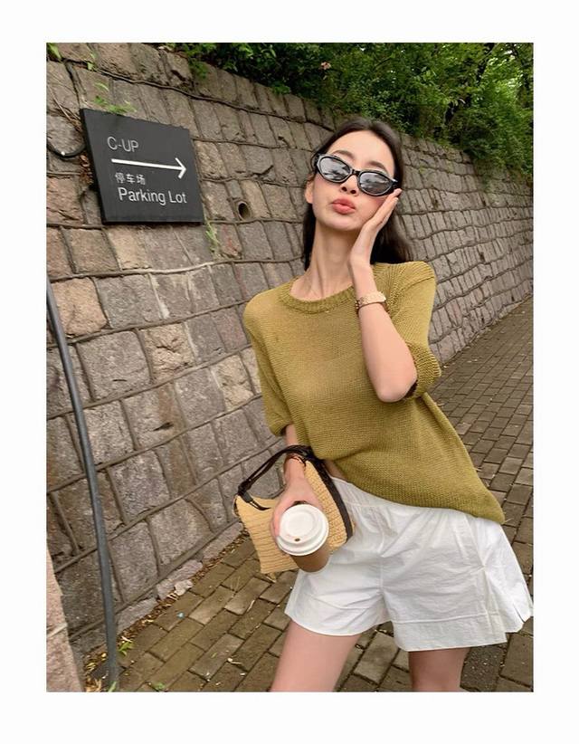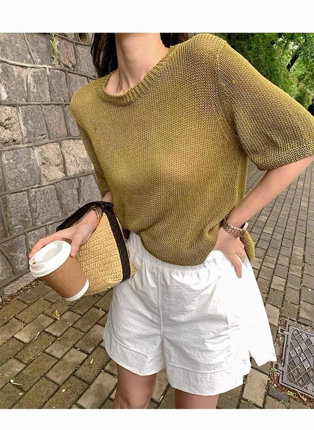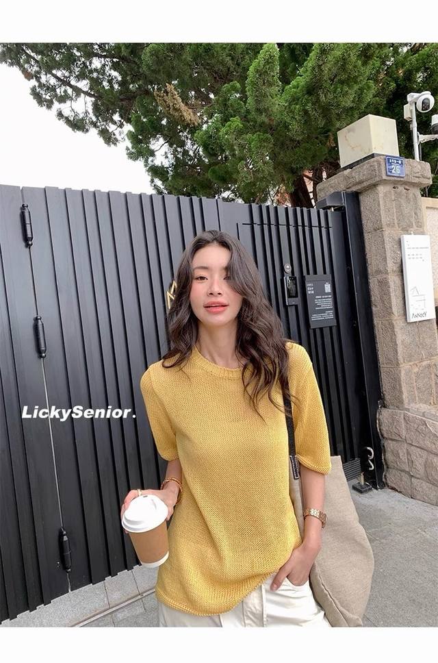Autumn new and paper yarn round neck mid-sleeve top One size DDD