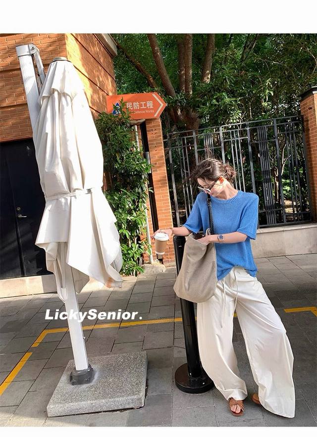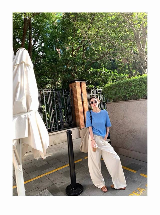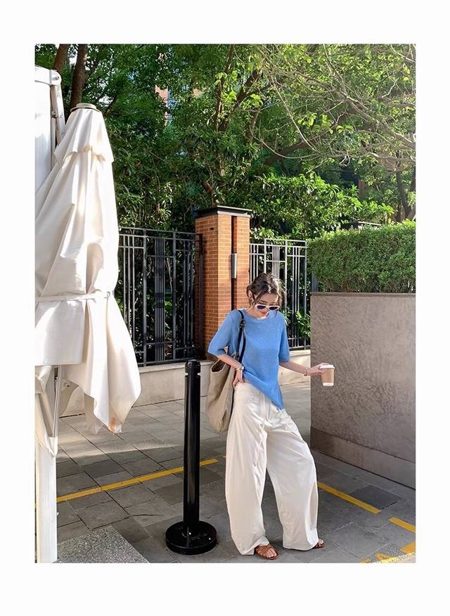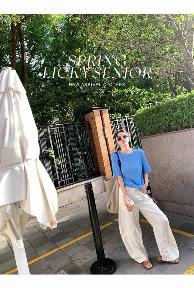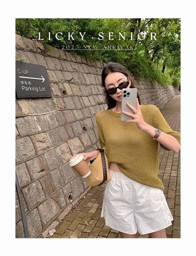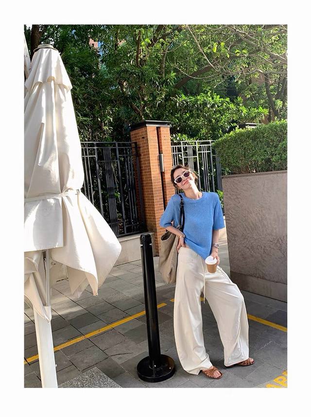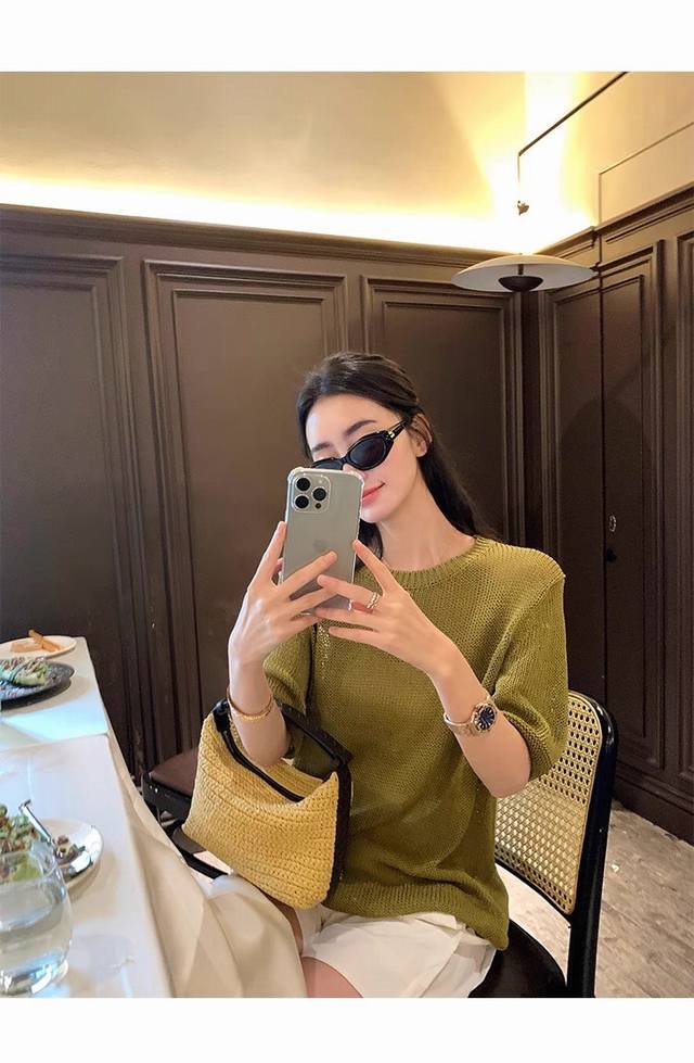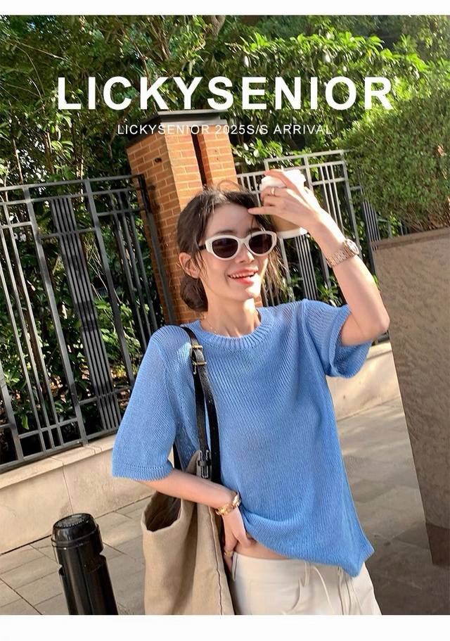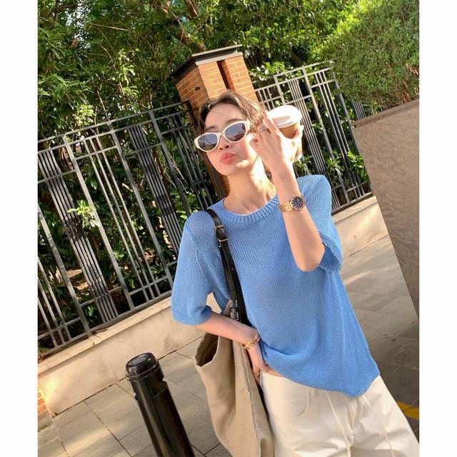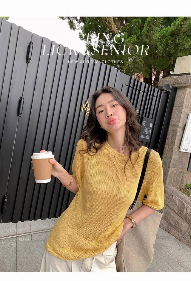 Autumn new and paper yarn round neck mid-sleeve top One size DDD