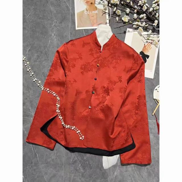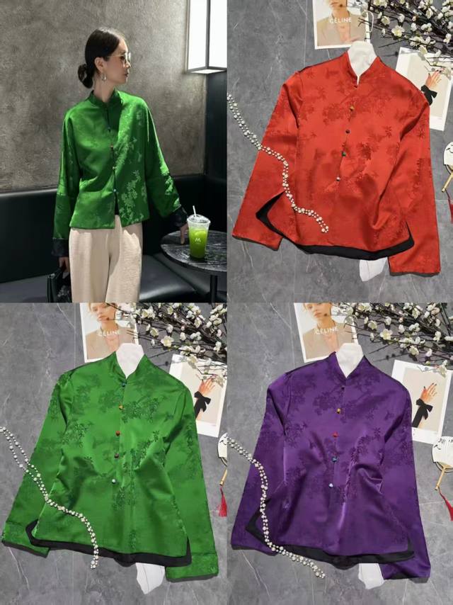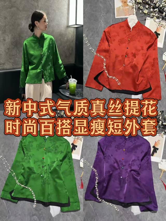 Autumn new Chinese temperament jacquard fashion all-match slim short jacket three colors and four sizes SML Xl red purple green