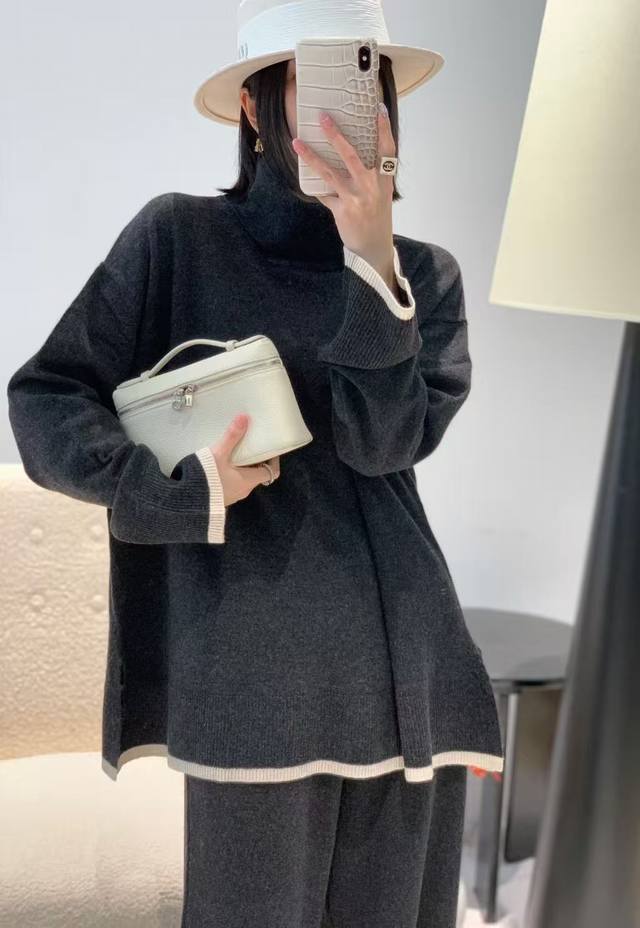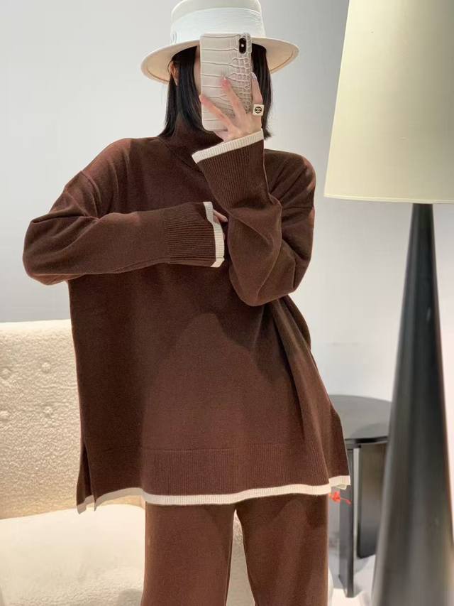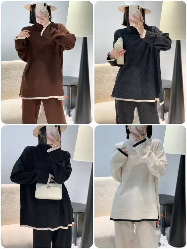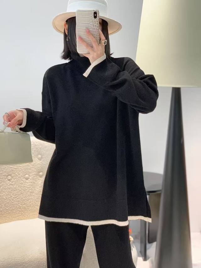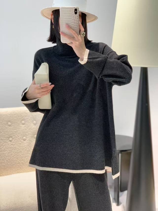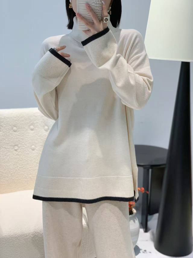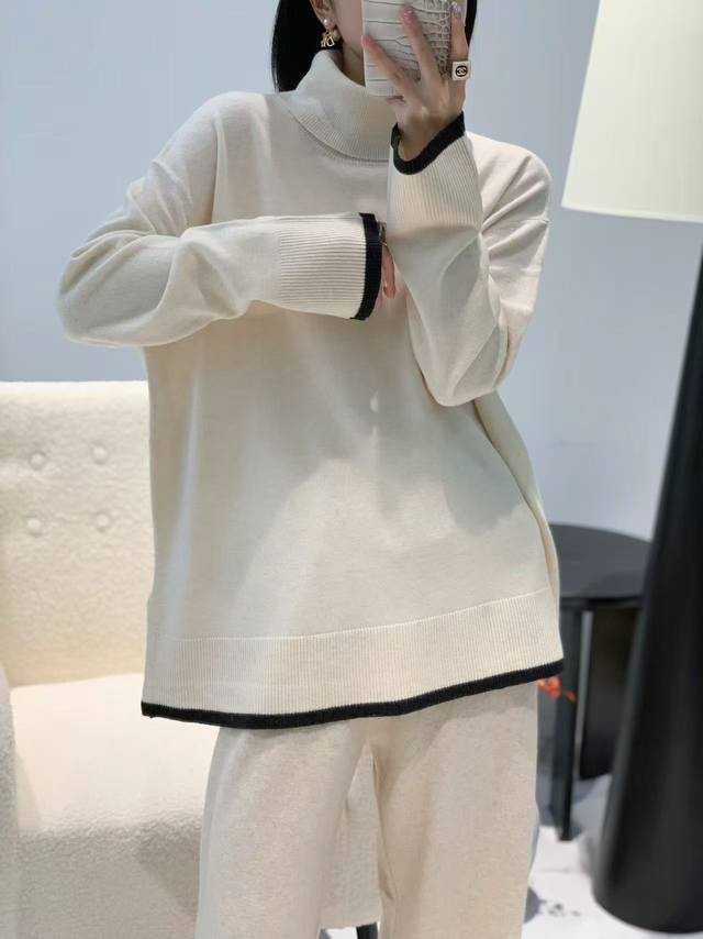 Autumn new full wool high collar color matching top one size