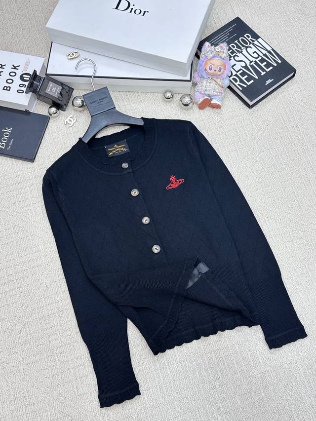 Autumn/Winter New Hollow-out Round Neck Knit Cardigan with Logo Pattern Decoration - High-end Look, 3 Colors Available (
